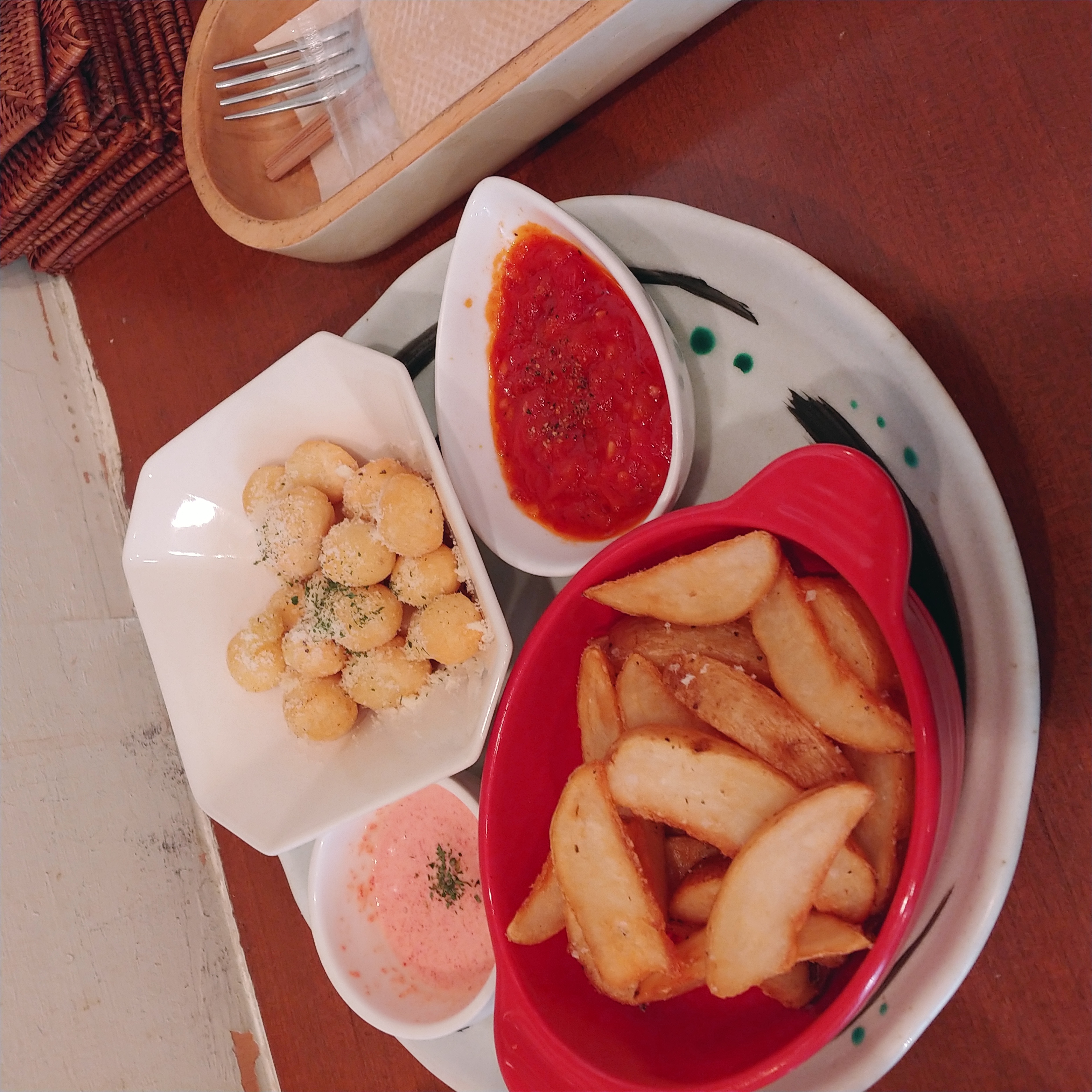 괜찮다고 감튀(감튀는 제가 정말 좋아하는거라 가는 곳마다 시키려고 하는 경향이 있습니다)랑 오리고기랑 계란 올라간 피자랑 굴을 올리브오일에 적신거랑 시켰는데 다~ 맛있었어요!