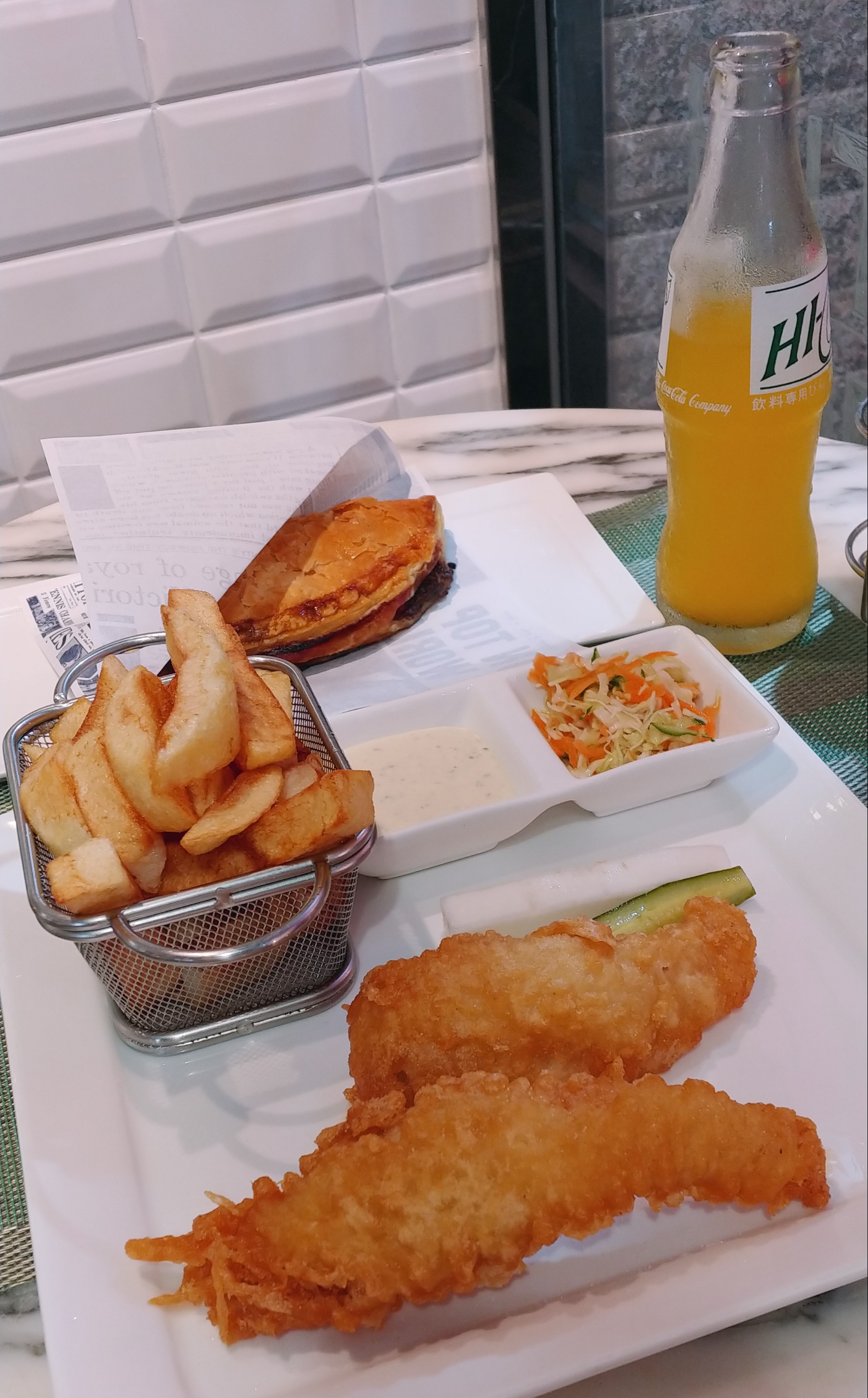 여기 점심 세트로 감튀랑 치즈 피자 한 조각이랑 콜라랑 시키면 800엔대에요.