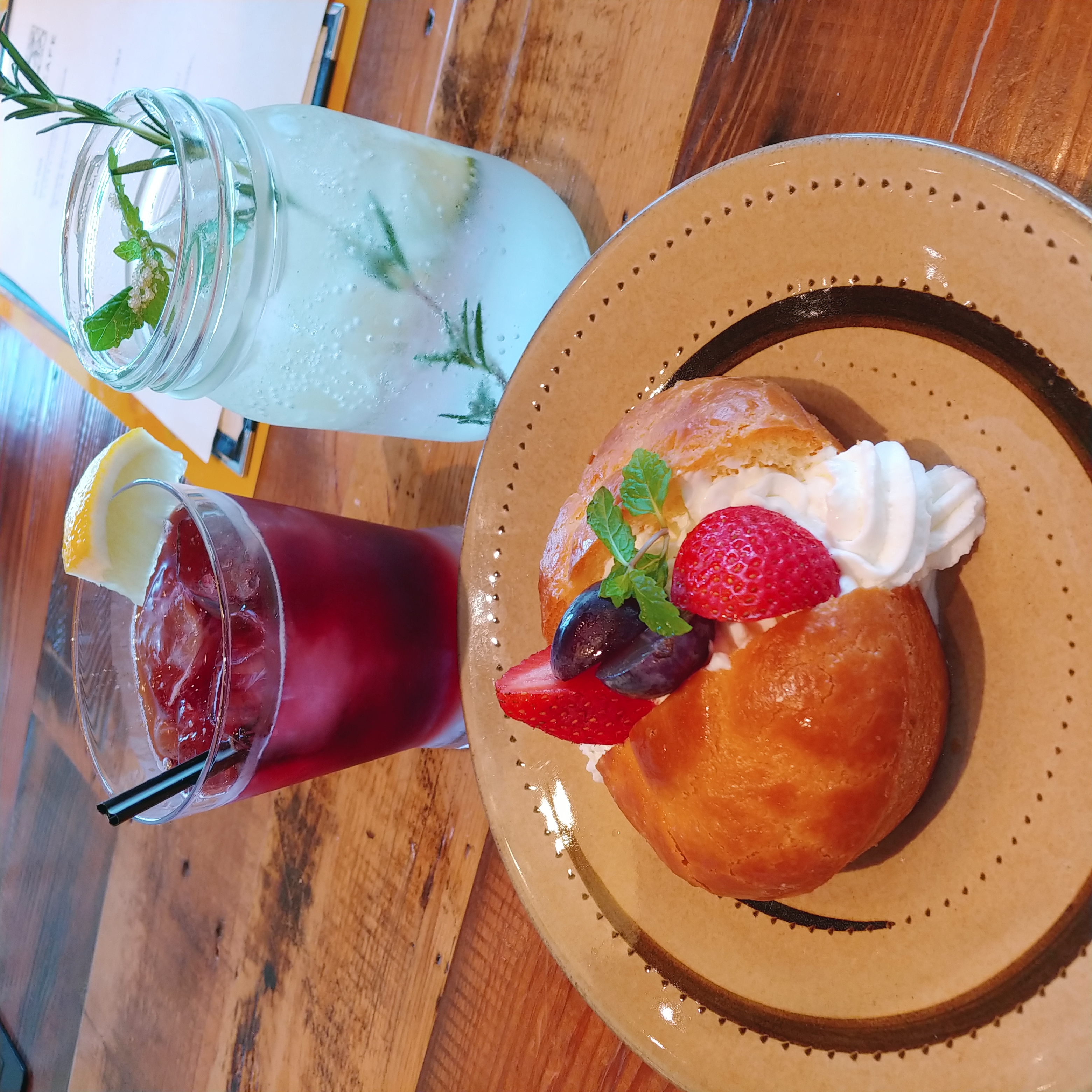 여기서 밥을 먹어본 적은 없고 야채주스랑 디저트(럼에 적신 빵)를 시켜봤는데 둘 다 맛있었어요!
