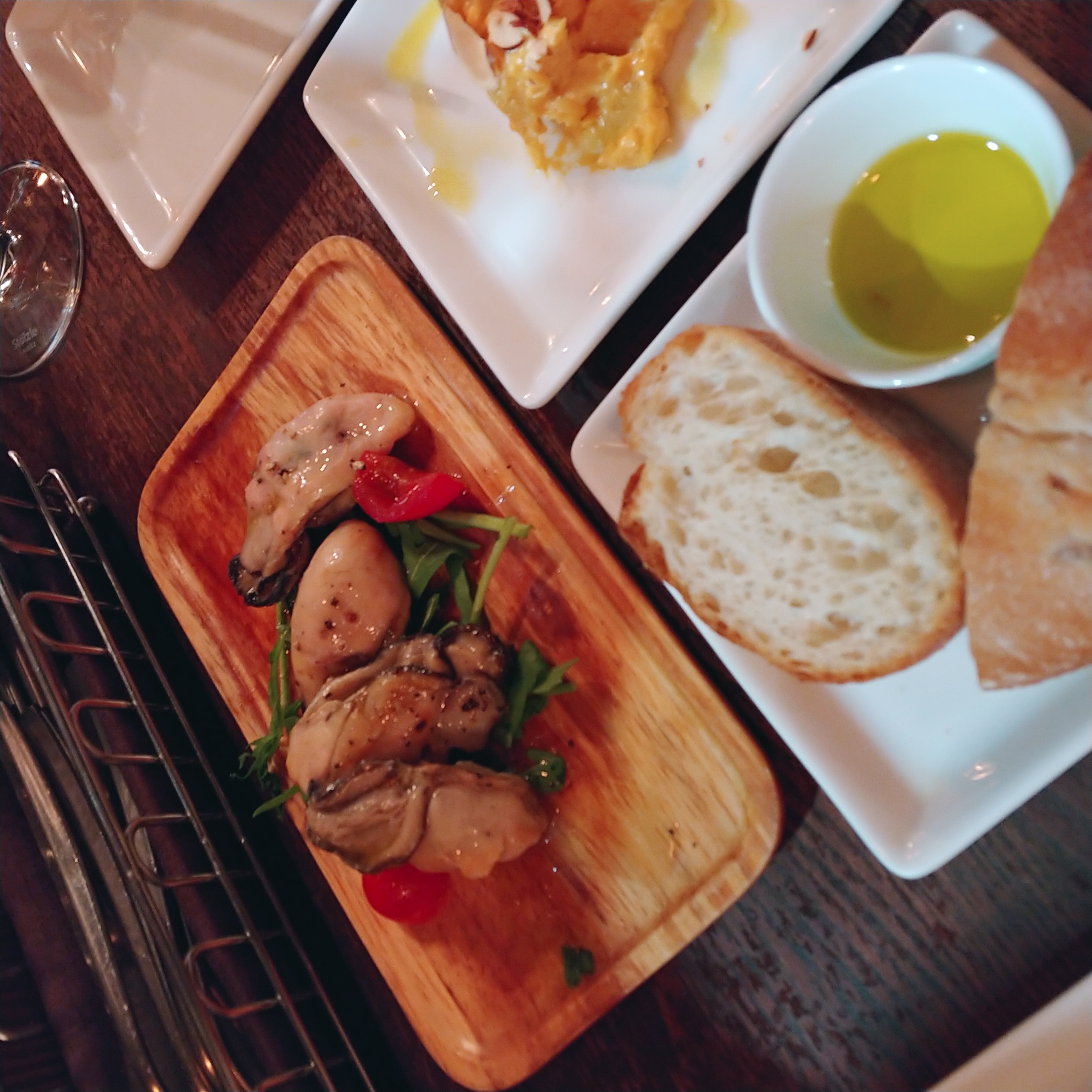 개인적으로 피자는 잘 모르겠고(친구는 맛있다고 함) 감튀랑 같이 나오는 사워크림이 가게에서 만든건지 맛있었고 오리고기도 부드럽고 기본적으로 따라 나오는 단호박 샐러드에 빵에 굴 올려 먹으니 진짜 맛있더군요.