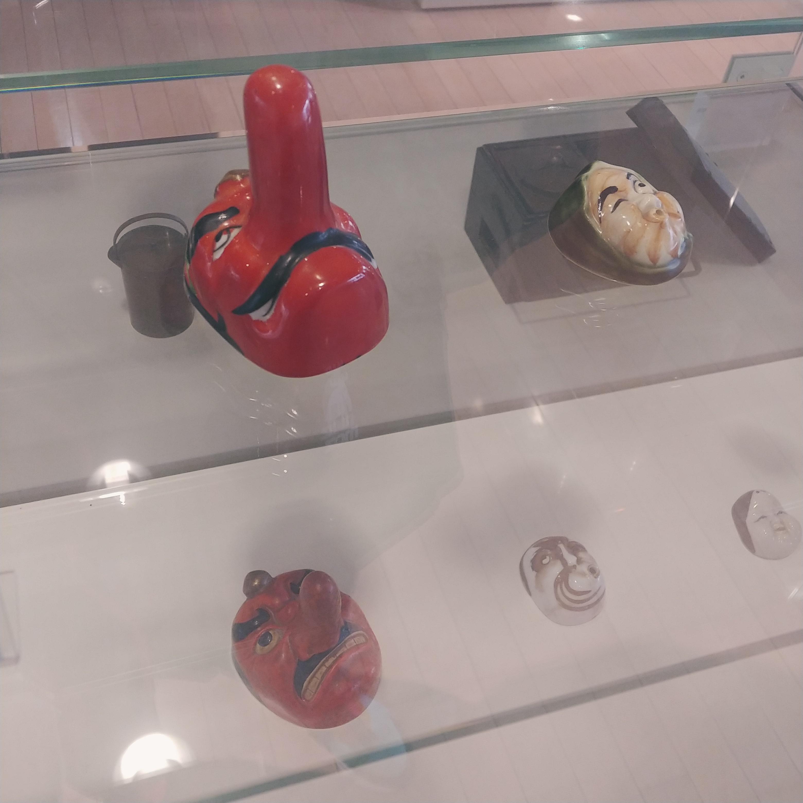 여러 공예품, 기모노 등이 놓여져 있었고 따로 분리된 공간에 能面(노-멘; 노-라는 전통극에 쓰이는 가면)이 있었어요.