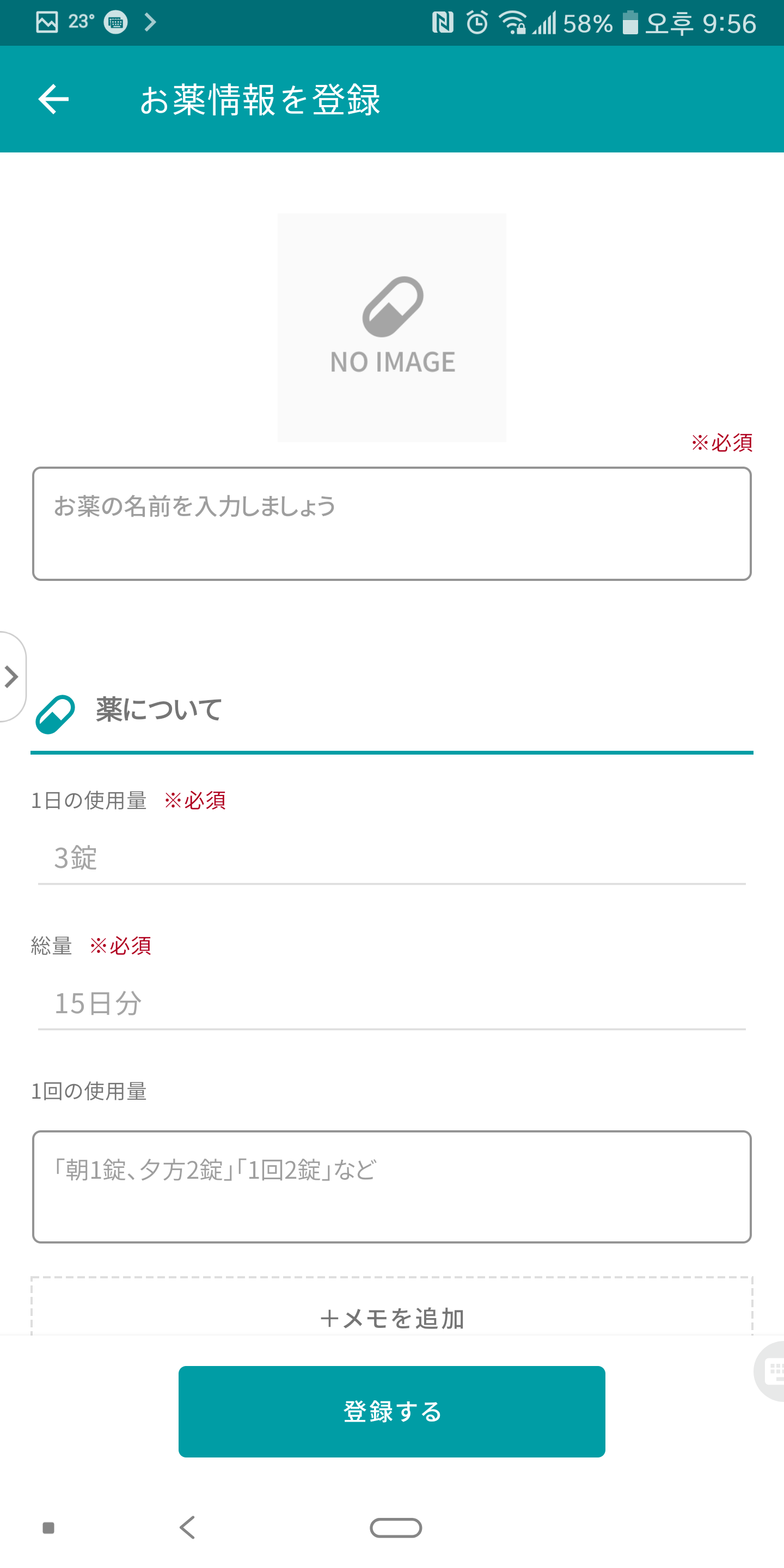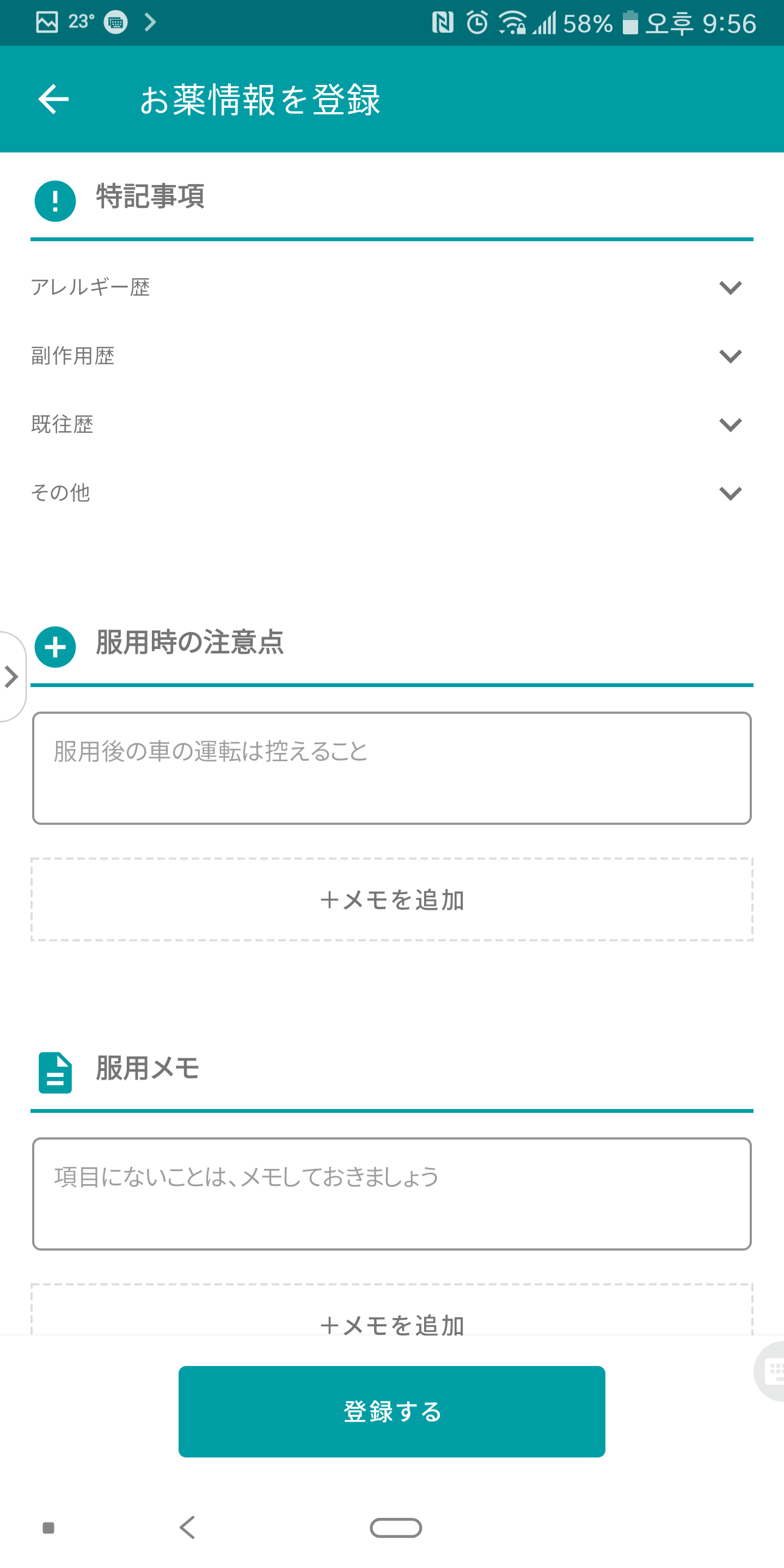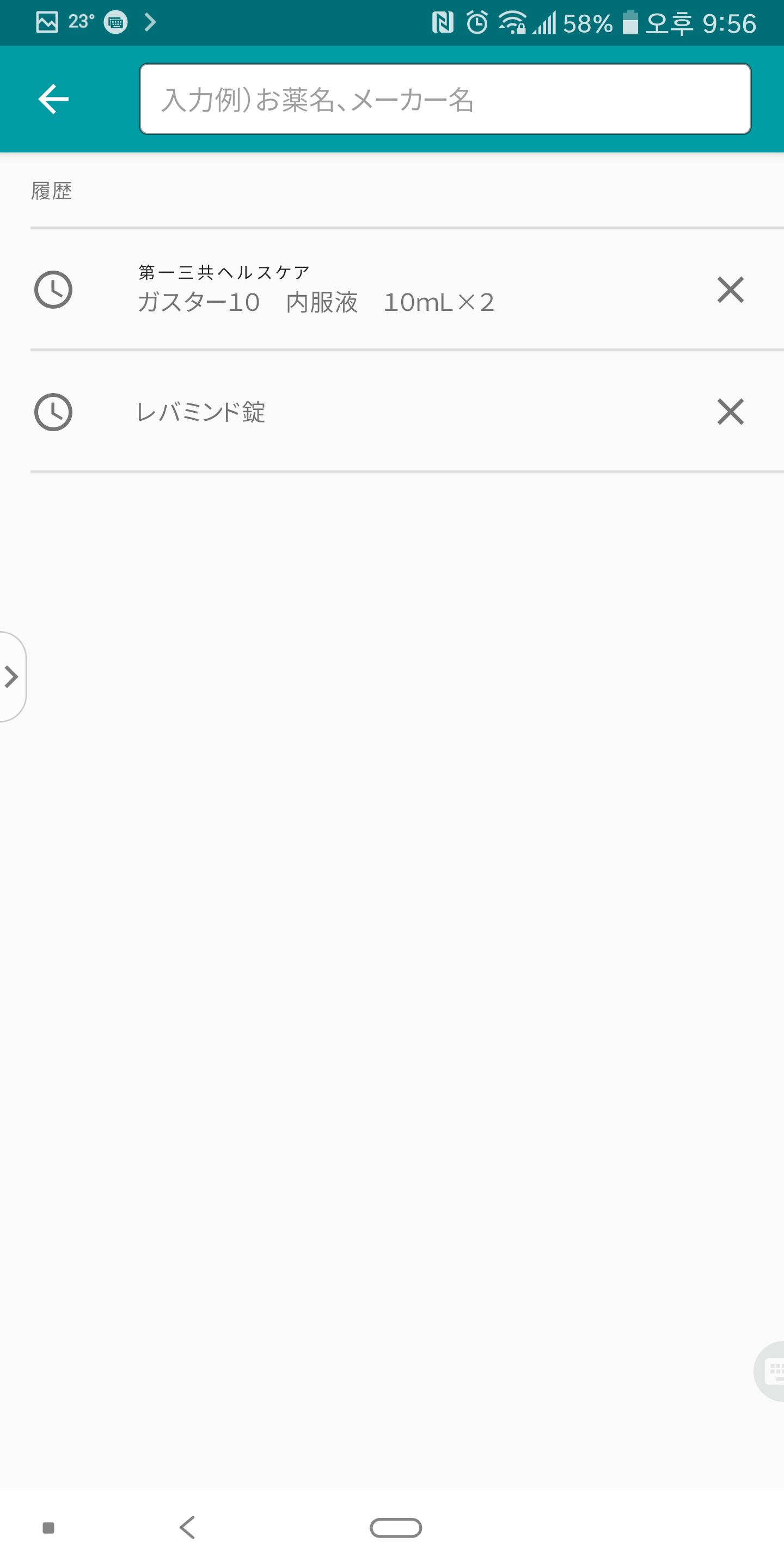 약 정보를 추가(お薬を追加)를 누르면 아래와 같은 화면으로 넘어갑니다.