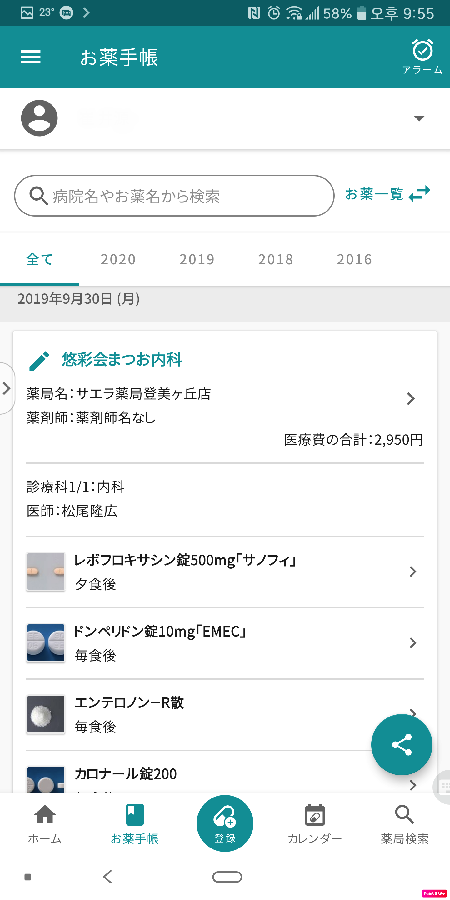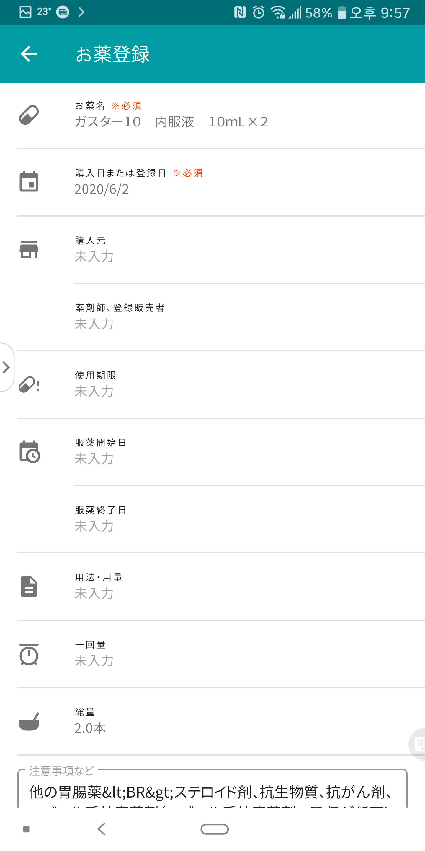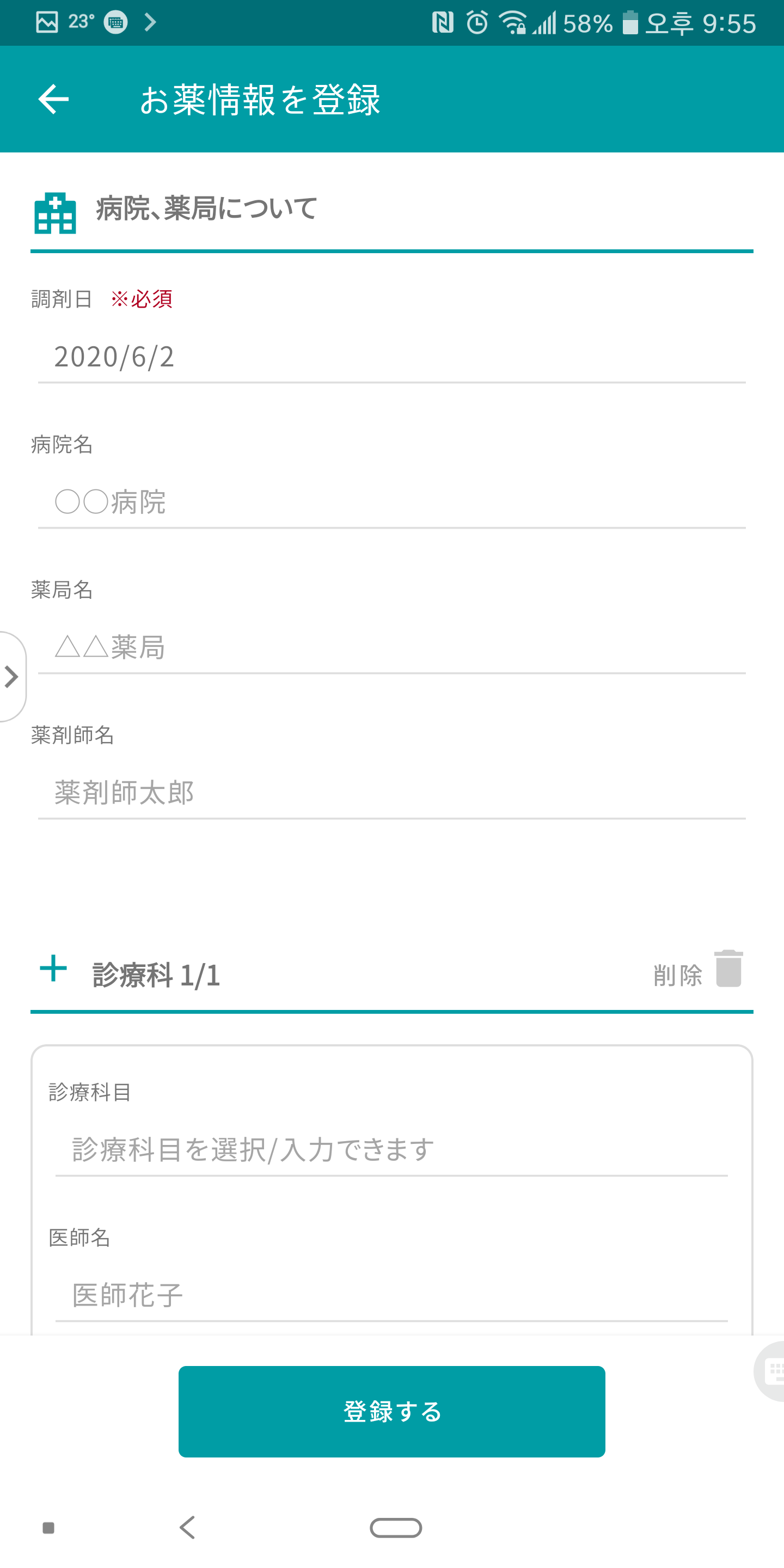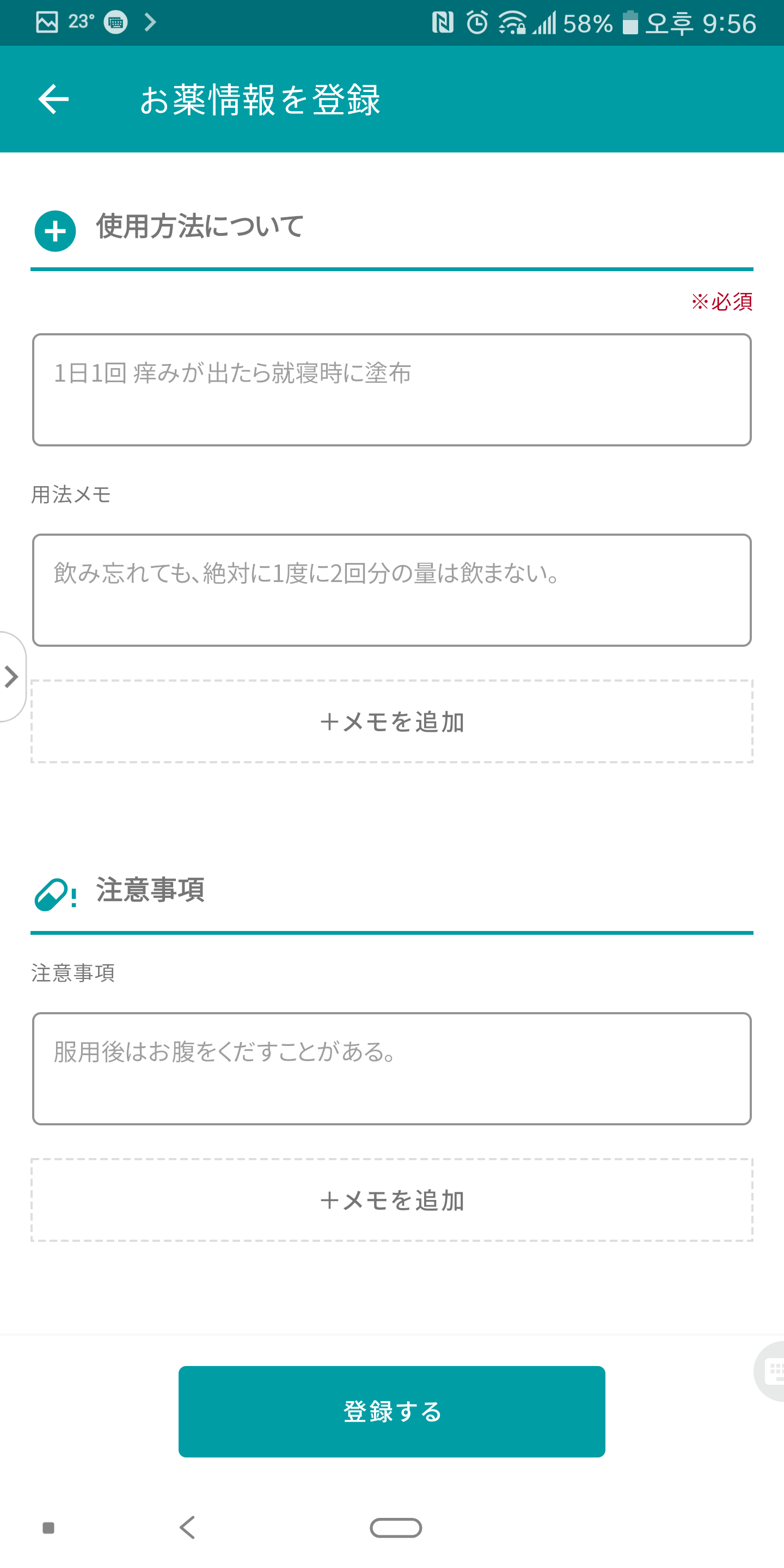 약 정보를 추가(お薬を追加)를 누르면 아래와 같은 화면으로 넘어갑니다.