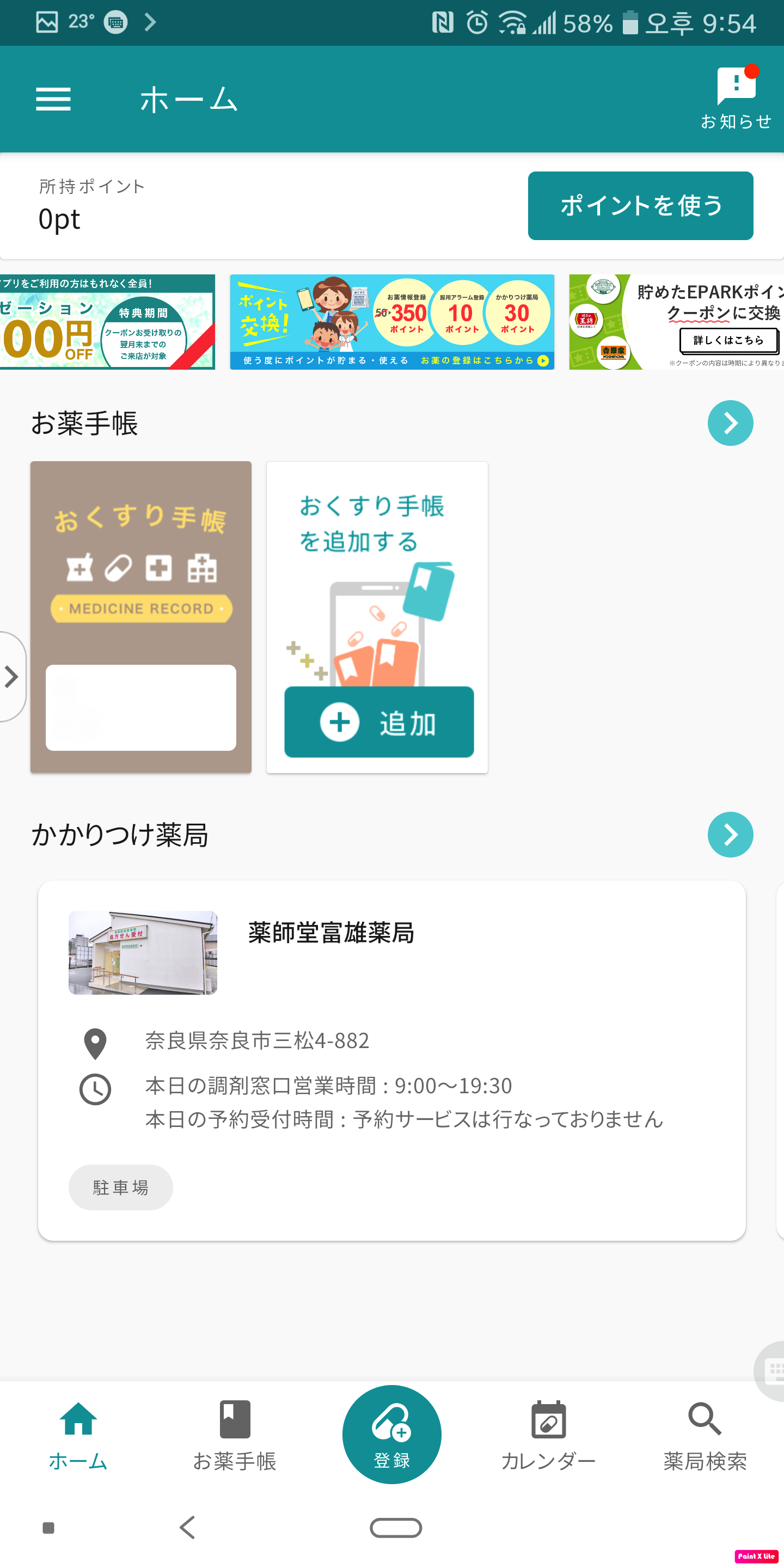 아래 메뉴바에서 약을 등록(登録) 합시다.