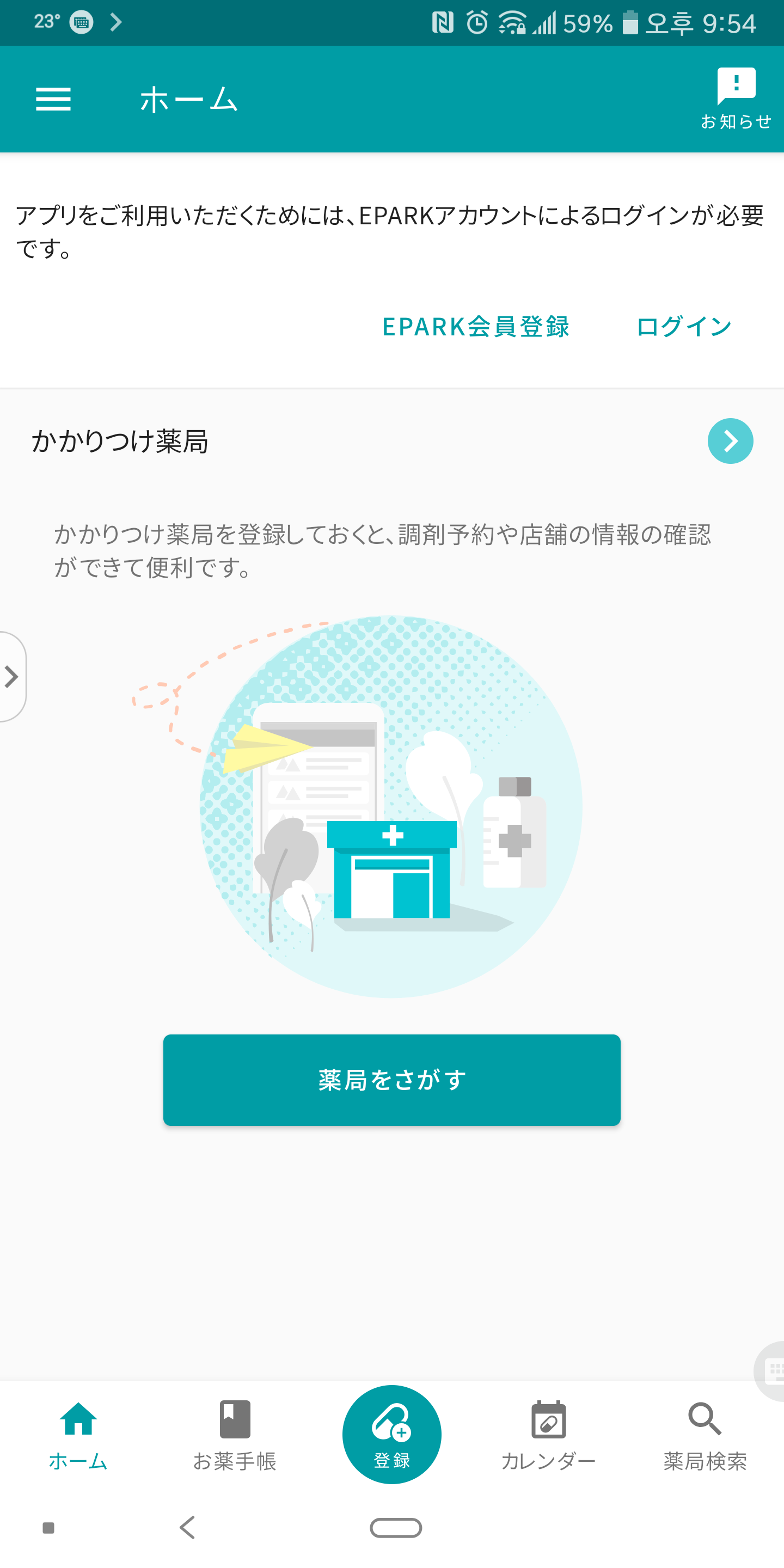 어플을 열면 아래와 같은 홈화면이 나오는데 일단 회원가입(EPARK会員登録)을 합시다.