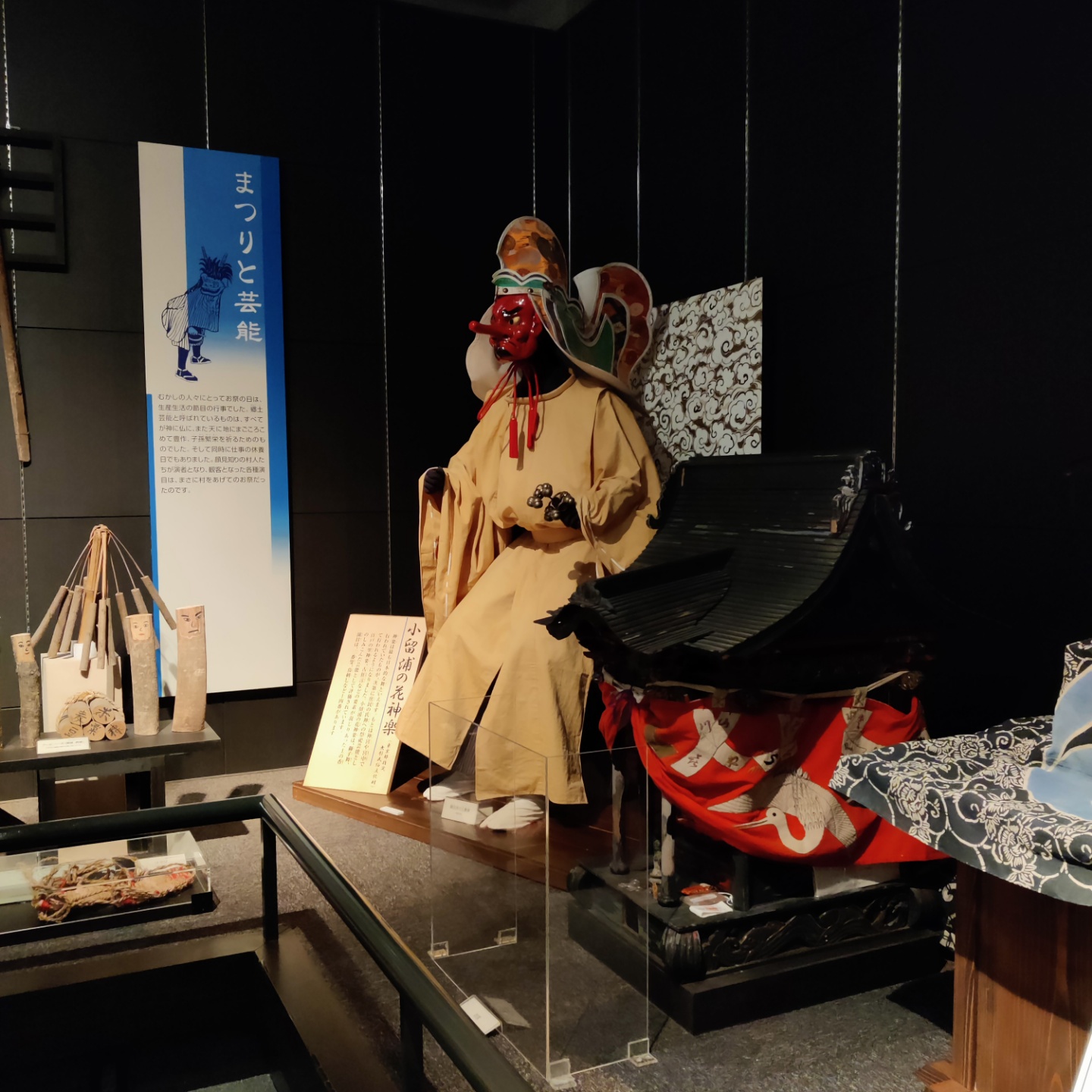 이 지역 축제 때는 獅子舞(시시마이; 사자탈 춤)를 춘다고 하는데 그에 관한 사진, 탈, 영상 전시를 하고 있었어요.