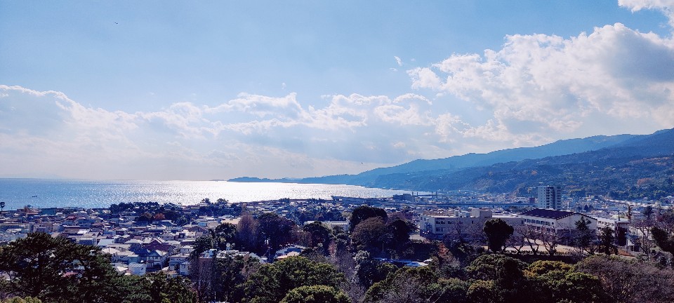 천수각에 올라가니 바다가 보였습니다! 이 날 날씨 대박이었어요!