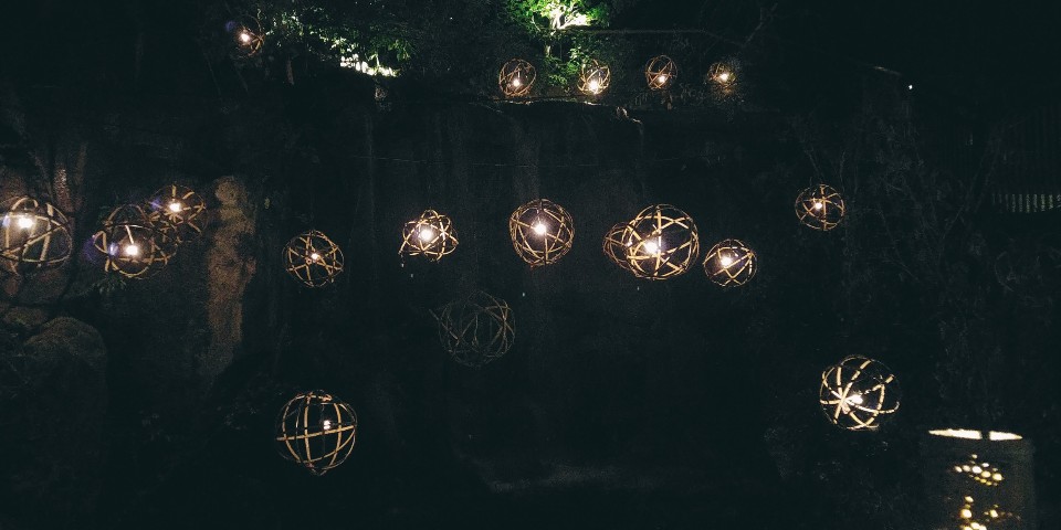 1층에 가면 정원으로 나가는 문이 있다고 했잖아요? 아까 안내받을 때 그 정원이 크리스마스 장식으로 반짝반짝 하다길래 가 봤습니다.