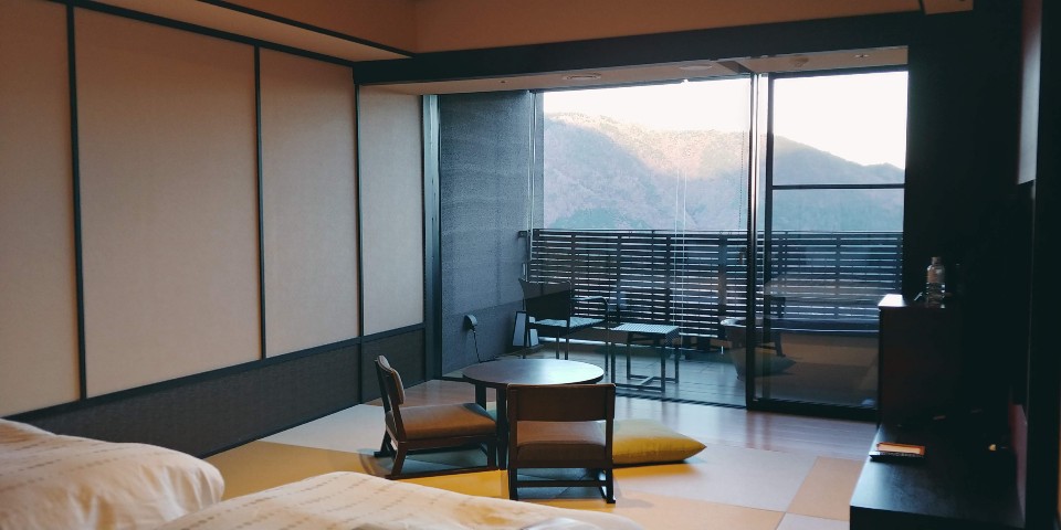 들어가자마자 짠! 베란다 노천탕과 다다미방이 나왔습니다!