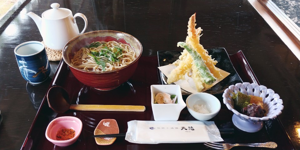 산골이라 어디 나가 먹으려면 버스를 타고 가야 하는데 버스비가 여간 비싼 것이 아니라 근처에 비싼 소바집에 가기로 했습니다. 제가 묵은 텐유와 연결되어있는 유넷상 3층인가에 있어요.