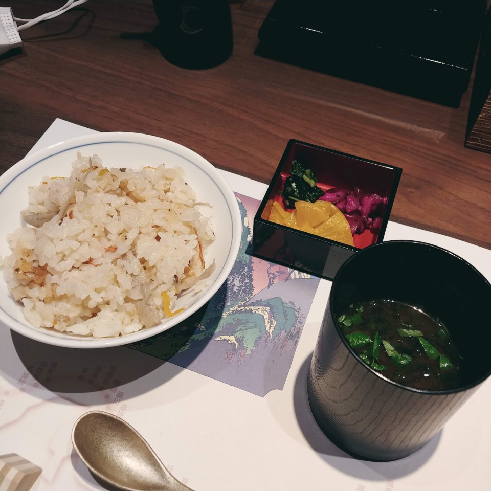 여기까지 아주 좋다가 식사로 나온 우엉 생강밥이 아~무 맛도 안나서 단무지랑 먹다가 맛 없어서 다 못 먹었습니다.