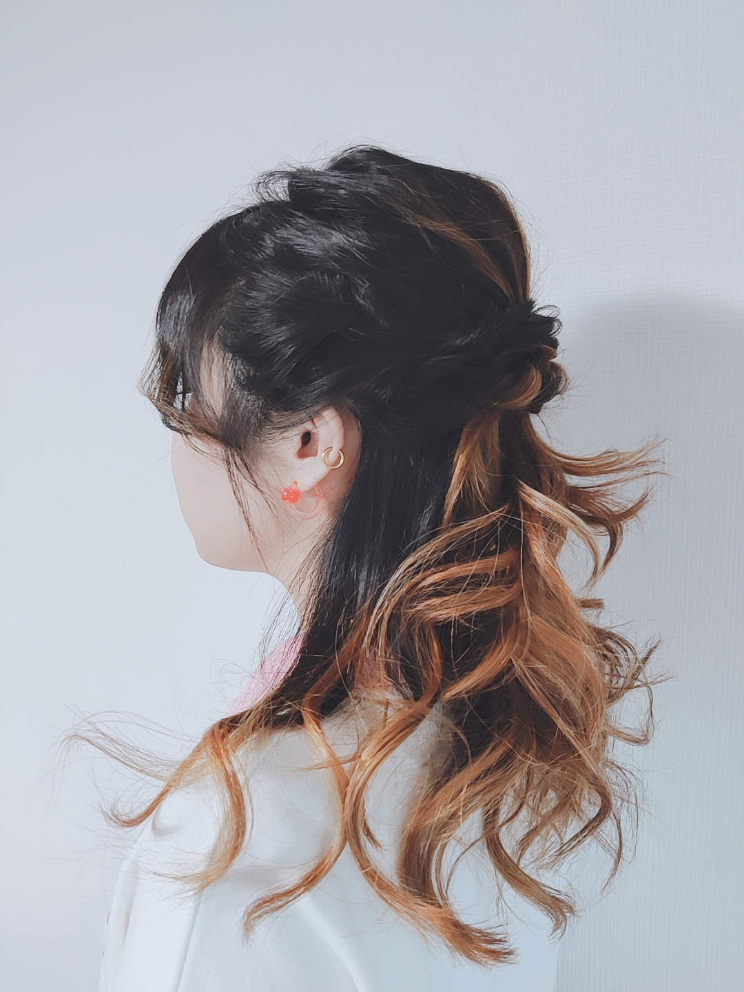 아래가 이제 반만 올린 건데 일본어로는 ハーフアップ (하-후 압뿌) 라고 해요.
