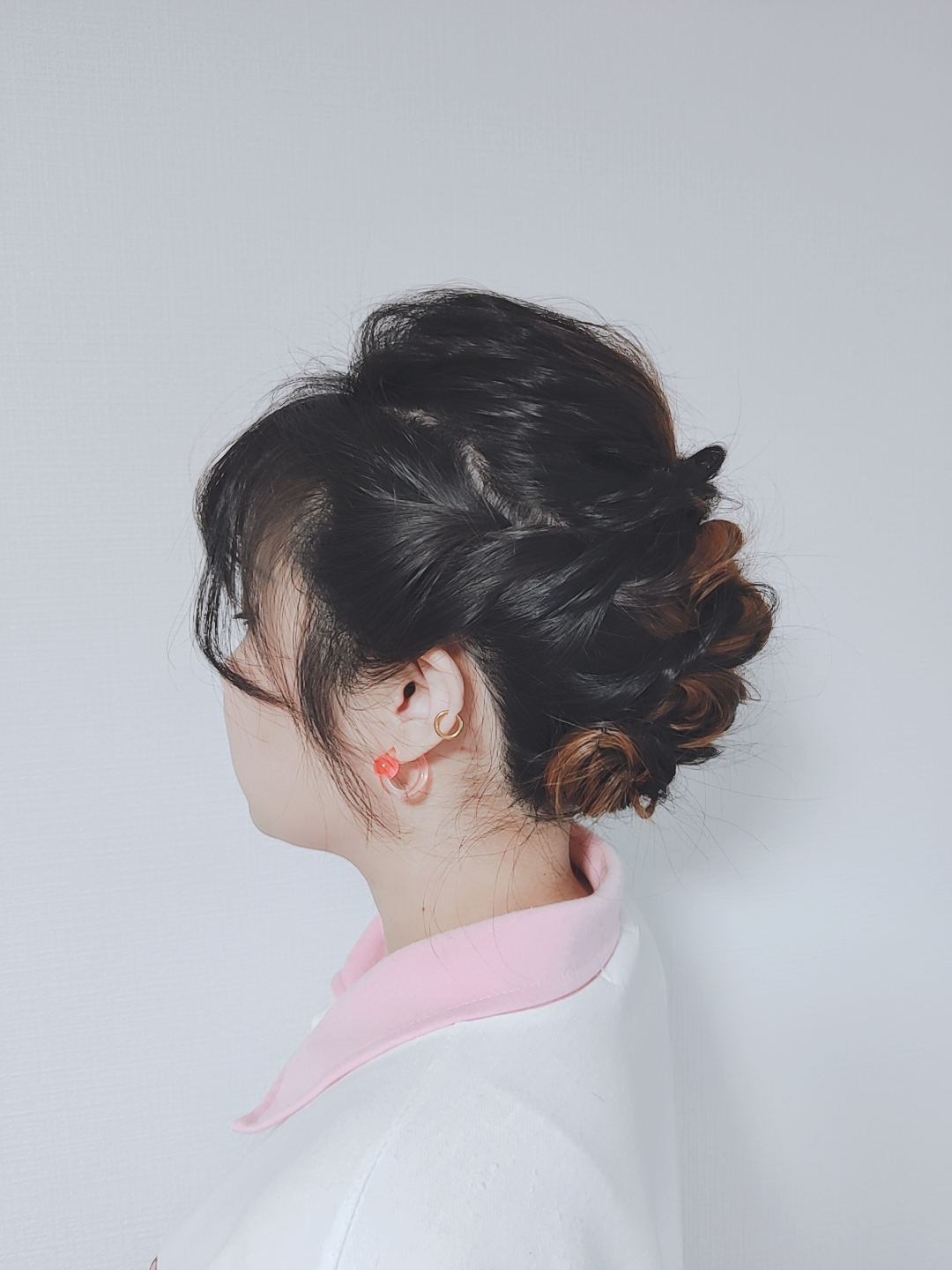 요즘엔 머리가 좀 더 길었는데 어쩌다 보니까 아는 메이크업 아티스트 (지망생에 더 가까운?) 분이 본인 포트폴리오 작성해야 한다고 머리 모델이 되어주지 않겠냐 해서 일본 미용실에서 셋업? 하는거 그 왜 결혼식 머리 졸업식 머리 캬바쿠라 머리 이런거 있잖아요? 그거 했어요.