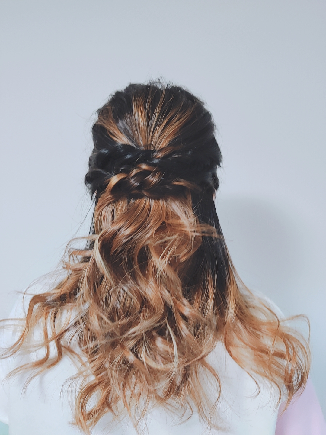 개인적으로는 반만 올리는게 좋았어요. 전체 다 올리는 건.. 뭔가 결혼식장 어머님들 머리 같지 않나요?ㅋㅋ