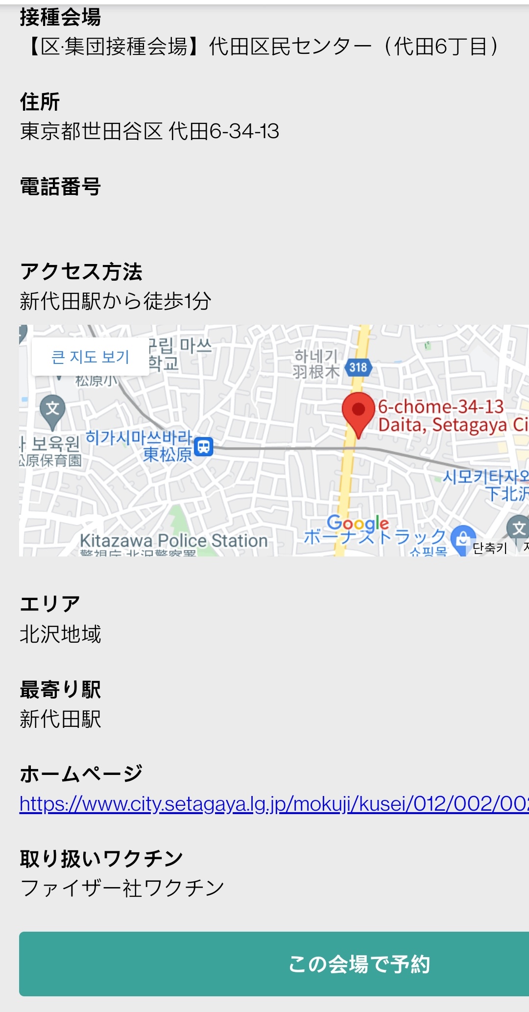 7. 아래로 스크롤 해서 この会場で予約(이 회장에서 예약)을 터치