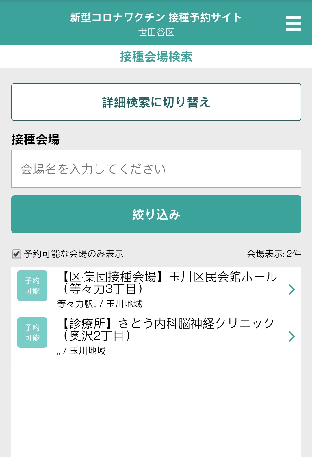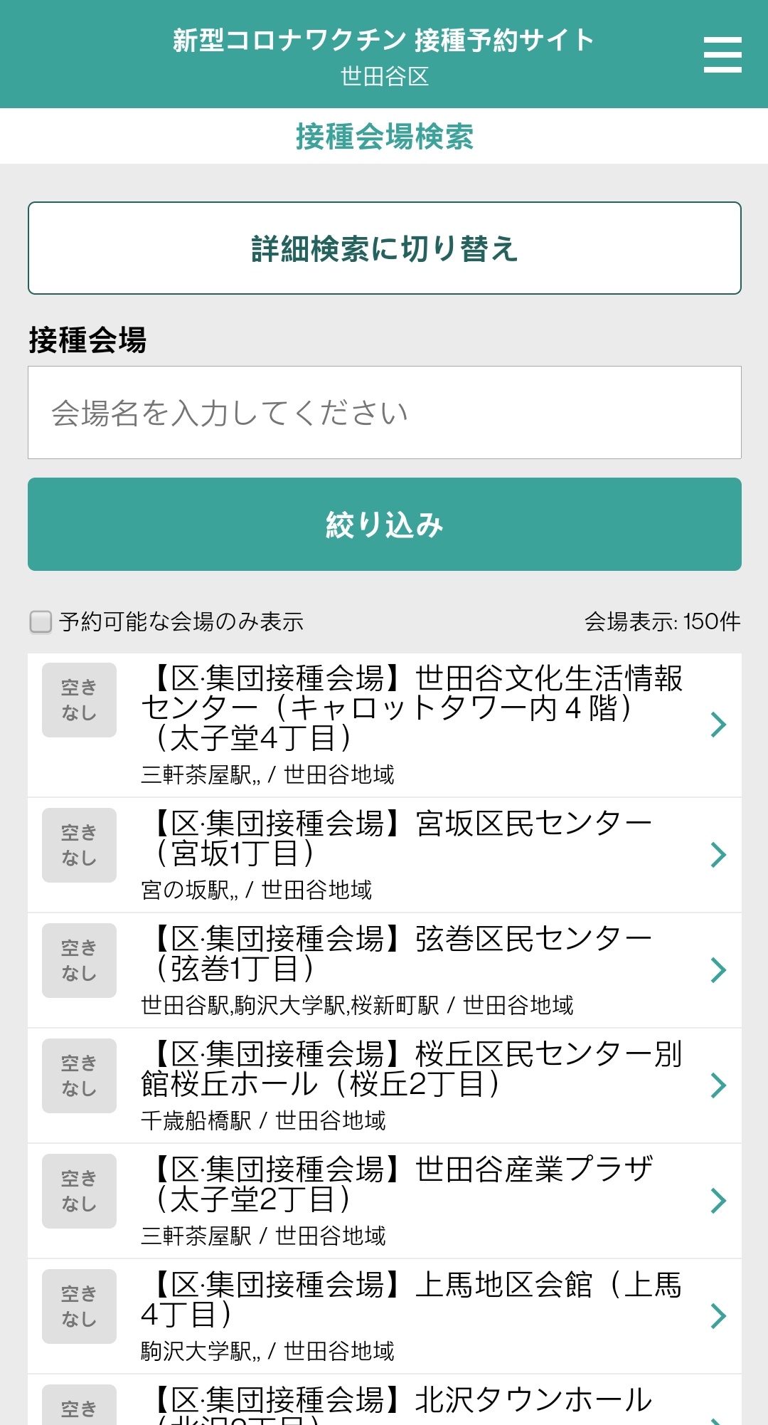 5. 계속 새로고침 하면서 予約可能な会場のみ表示(예약 가능한 회장 표시)에 체크하면서 확인