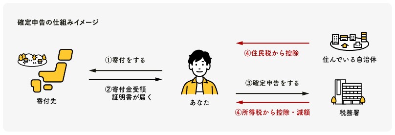 ふるさと納税로 세금 공제 받을 때에는 다음 해 확정신고기간에 확정신고를 하거나 ワンストップ特例制度(원스탑 특례제도)를 이용해 기부금을 받는 자치제가 직접 공제신청 하는 것으로 구매자는 아무 것도 안해도 공제 받을 수 있는 방법이 있어 선택 가능 합니다.