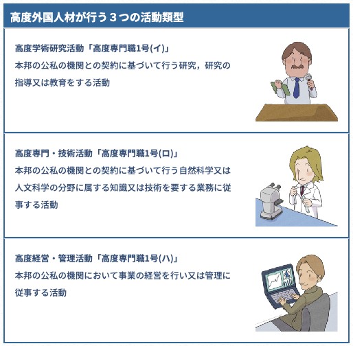 고도인재포인트제도(高度人材ポイント制)에 따른 출입국 재류 관리 상 우대 제도 → https://www.moj.go.jp/isa/publications/materials/newimmiact_3_index.html