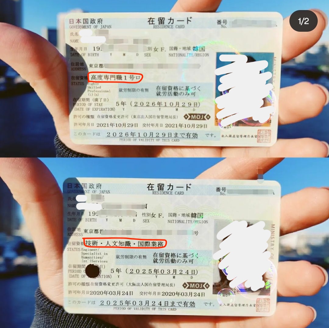저는 일본 IT 기업에 종사하고 있으니 (원래 취업비자 자격도 기술/인문지식/국제업무 였으니. 그리고 웬만한 일본 취업자들은 같은 비자 갖고 있을 거에요) 고도전문직1호 로로 자격을 변경했습니다.