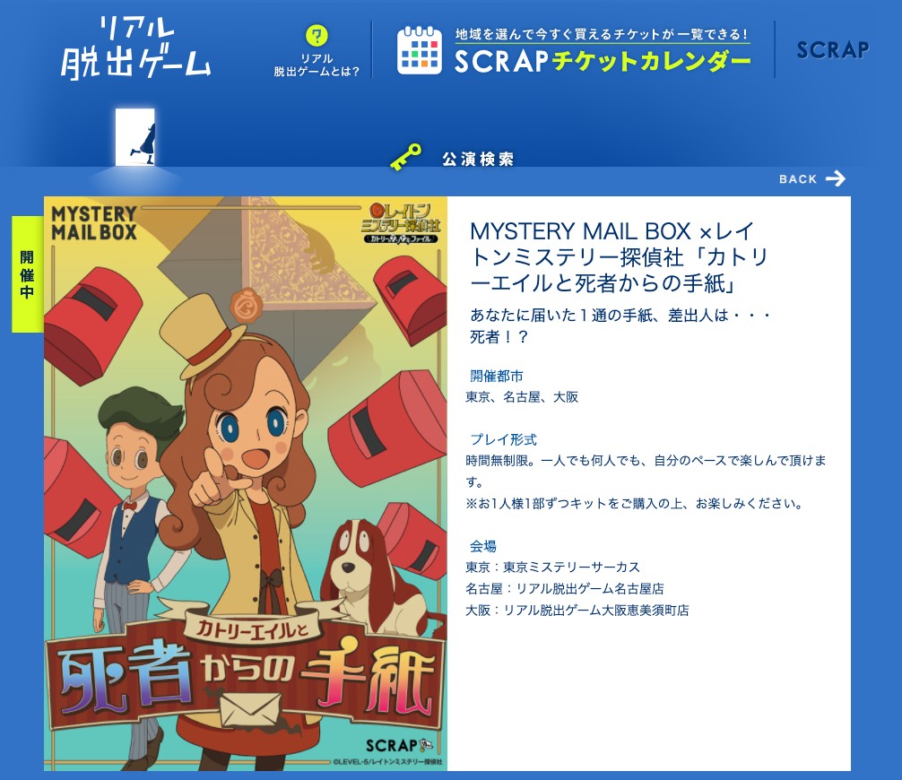 제가 전에 방탈출이 아닌 탈출게임북을 일본에서 사서 했던 얘기를 적은 적이 있는데 그 출판사(SCRAP)에서 사실은 방탈출도 영업하고 있거든요.