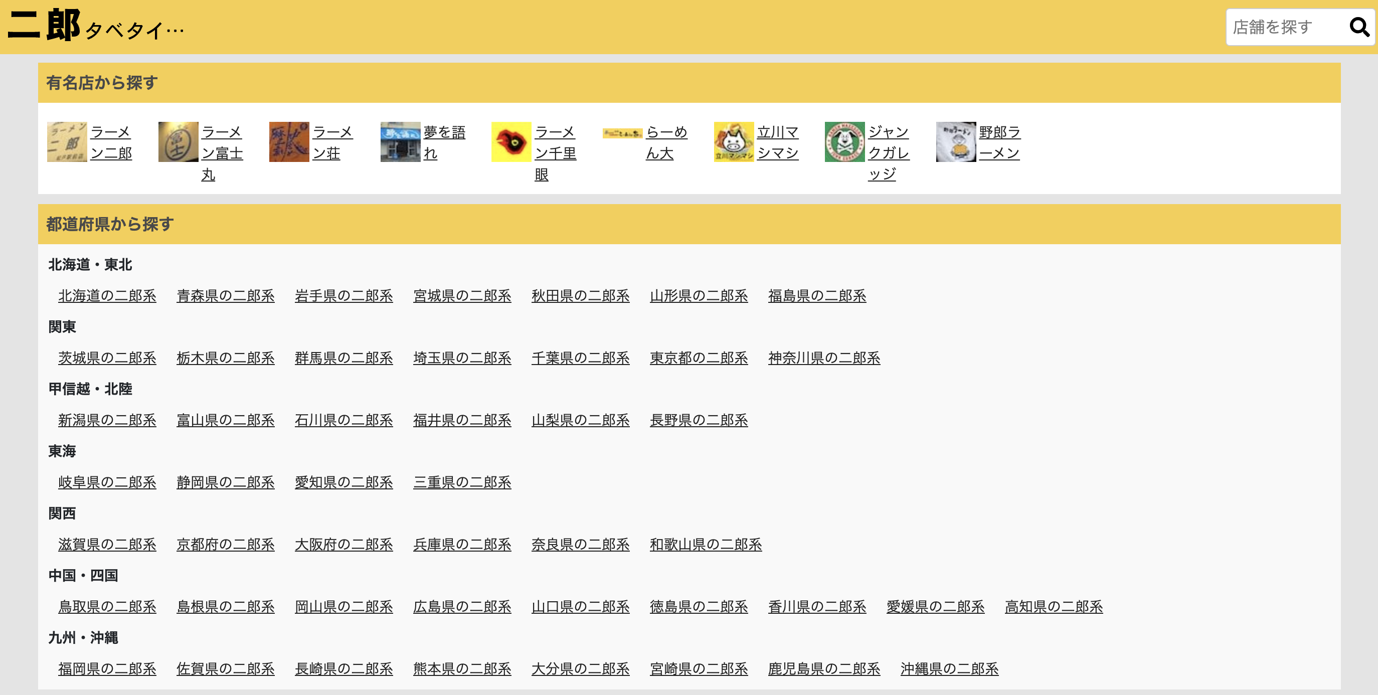혹시 일본 라멘 좋아하시는데 아직 지로를 접해보지 못했다면 먹어보세요~! 단 보통 라멘집보다 양이 많기 때문에 남기지 않도록 조심하시고요. 지로를 파는 라멘집은 아래 사이트에서 도도부현별로 검색해볼 수 있답니다.