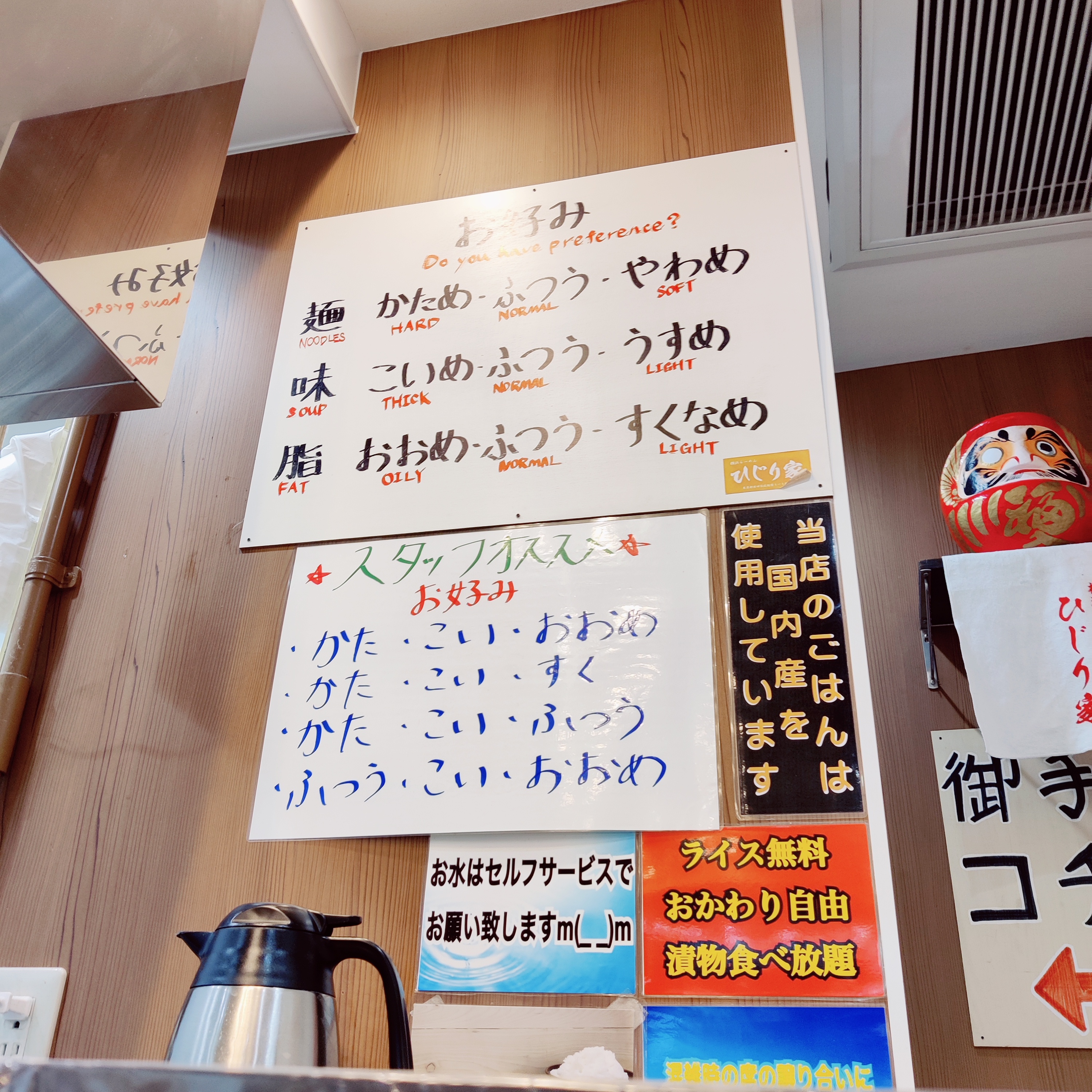 저는 라멘집을 많이 다녀본 것이 아니라 처음 이 질문을 들었을 때는 'えーと,お好みというと..?(어.. 취향이라 함은..?)'이라 물어봤었어요. 그러면 가게 벽면에 붙은 종이를 가리키면서 면 삶기, 면 굵기, 기름기, 간 세기 등을 고르라고 알려줍니다. 그러니 어려워하지 않아도 되지만 위에 적은대로 라멘지로는 미리 알아보고 연습해서 가는 것이 좋겠네요ㅋㅋ