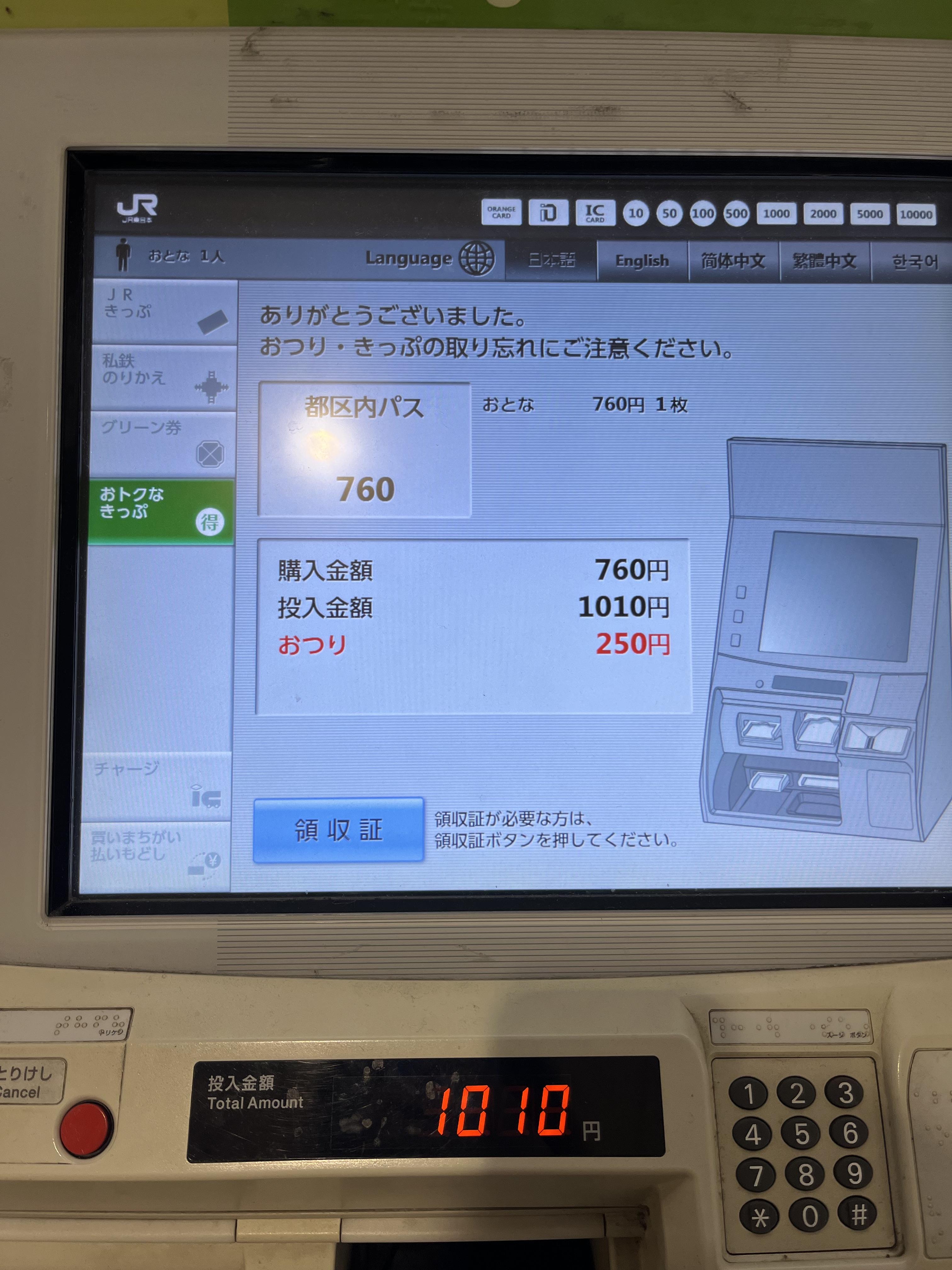 Suica(도쿄에서 판매하는 교통카드 중 하나)를 사용하신다면 앱으로도 구입해서 카드 찍고 다니면 된다고 하는데 저는 PASMO(도쿄에서 판매중인 다른 교통카드)를 사용하기 때문에 티켓으로 샀어요. 덕분에 오랜만에 티켓 넣었다 뺐다 하면서 다녔네요ㅋㅋ