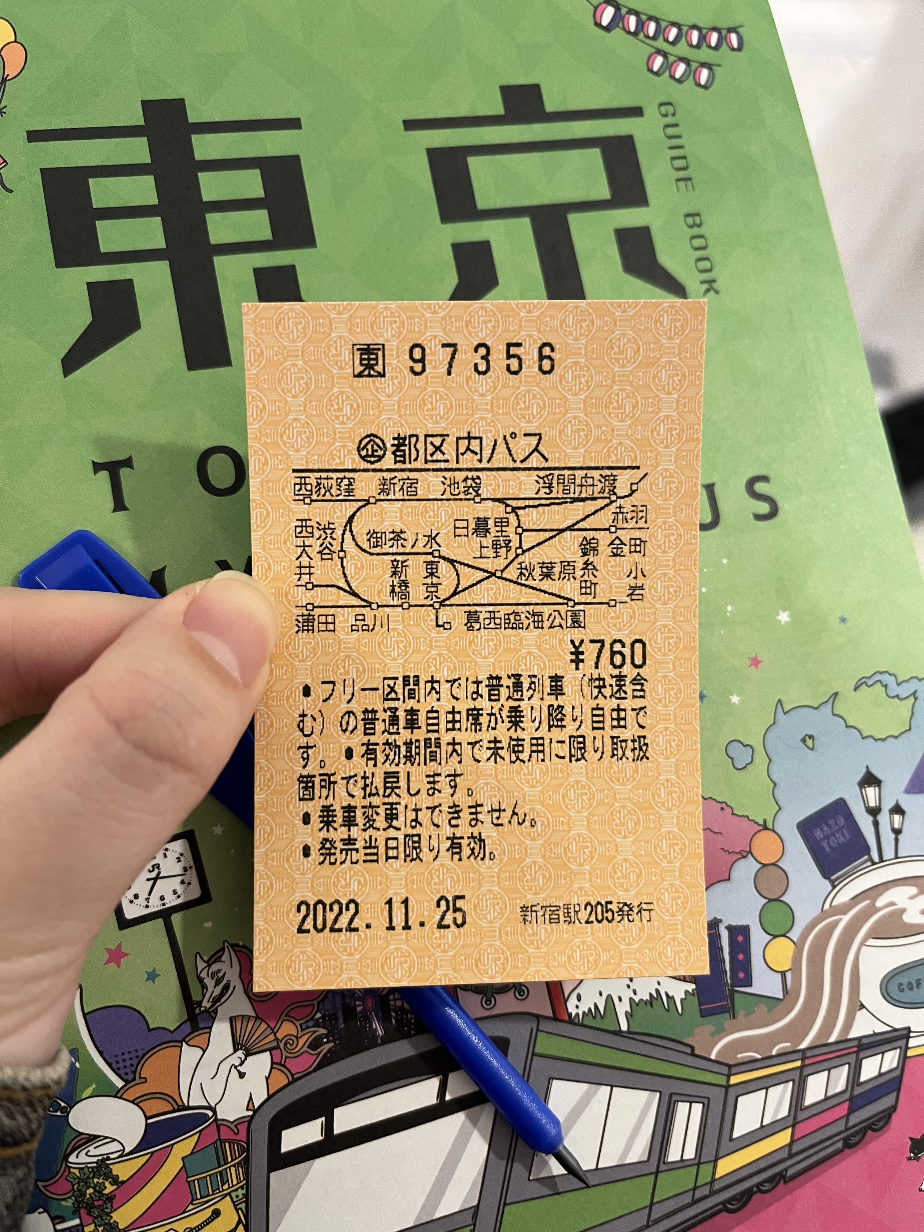 아마 이 글을 읽고계신 분들은 그럼 교통비 짱 많이 드는 거 아냐? 싶으실 수 있겠지만 JR은 하루동안 무제한으로 JR을 탈 수 있는 都区内パス(토쿠나이파스)를 판매하고 있어서 하루에 끝낸다면 성인기준 760엔만 들이면 돼요! 아이들은 380엔 입니다.