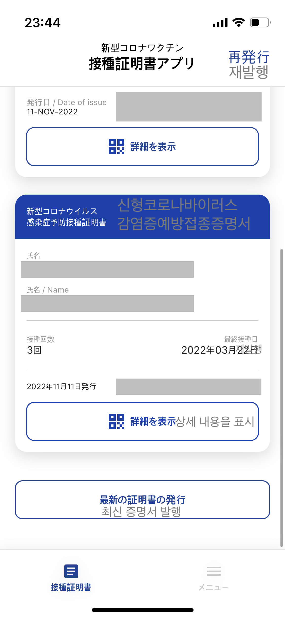 1. 接種証明アプリ에서 백신 증명서 발급 받기