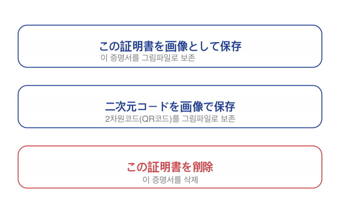 저는 국내용과 해외용 전부 발급 받았어요. 그러면 어플을 열었을 때 아래와 같은 증명서 카드가 보입니다.