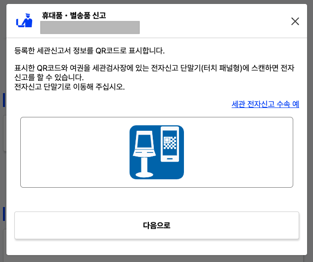 백신접종증명서를 일단 제출해두고 아까 '검역 수속(패스트 트랙)'을 선택했던 화면에서 '휴대품/별송품 신고'를 눌러 세관신고서를 작성해주세요. 다 한글로 나옵니다.