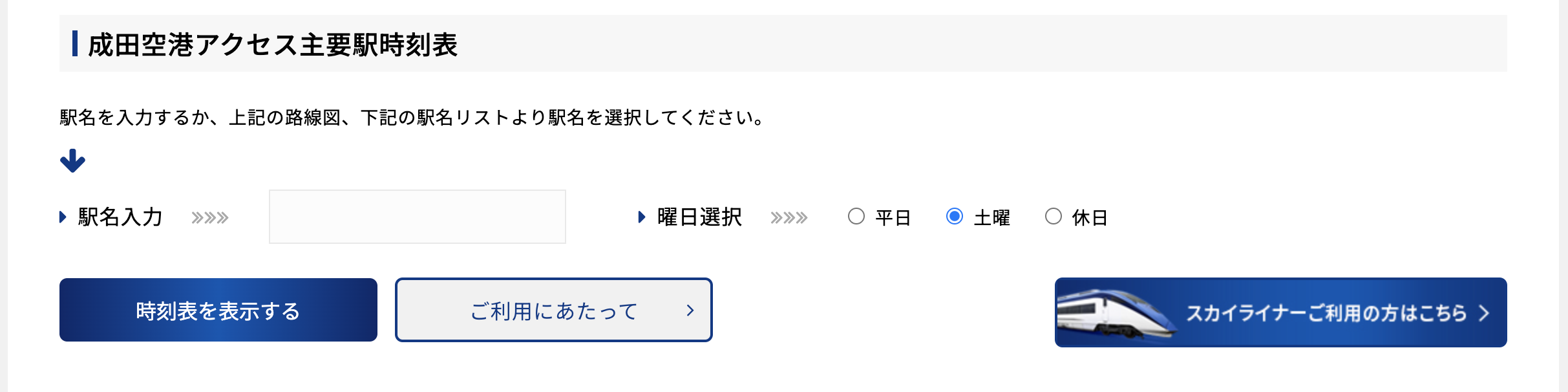 스카이액세스 시간표 검색(일본어) → https://www.keisei.co.jp/keisei/tetudou/skyliner/jp/timetable/index.php