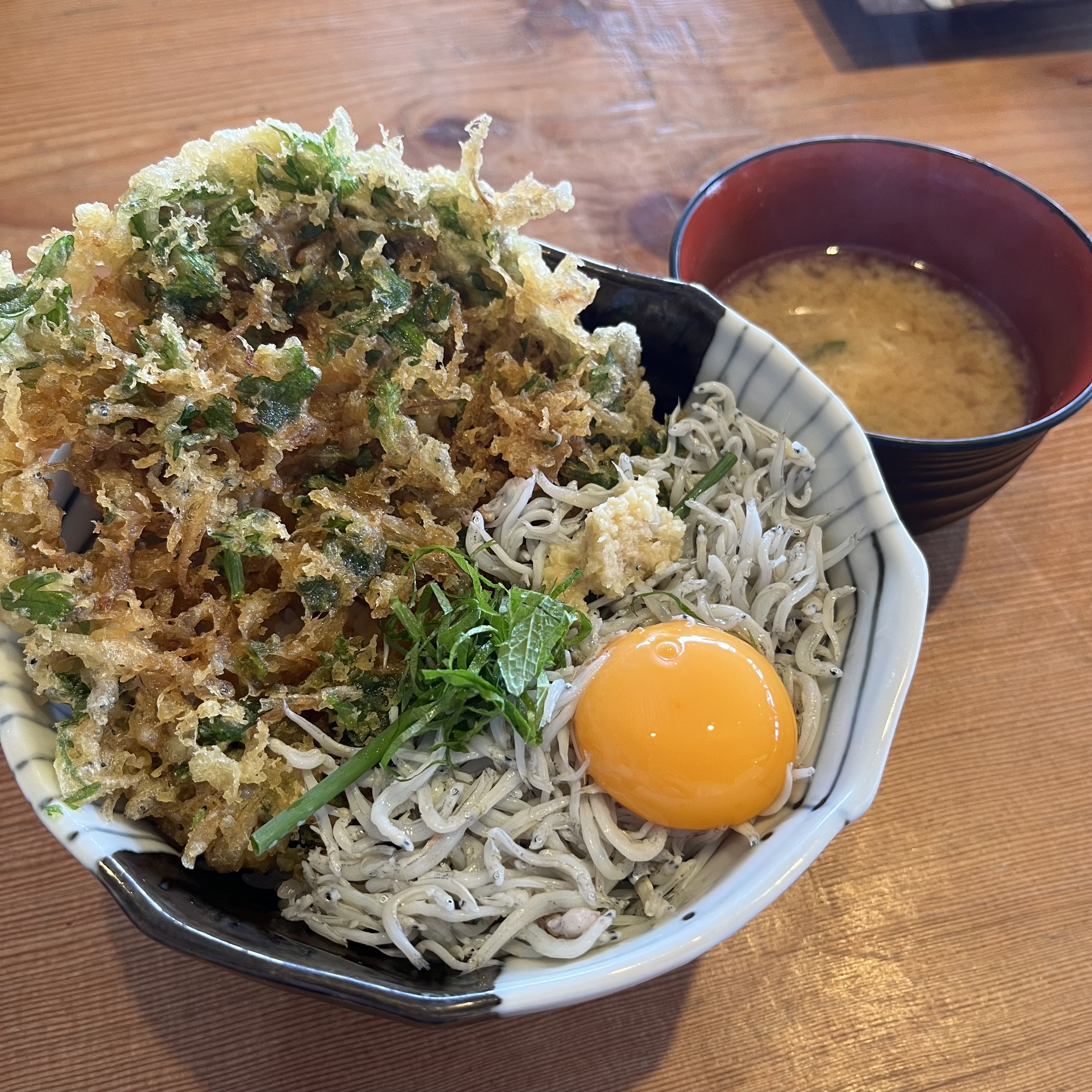 - 카마아게시라스와 시라스카키아게(시라스 야채튀김) 덮밥(날달걀 포함) 1,200엔