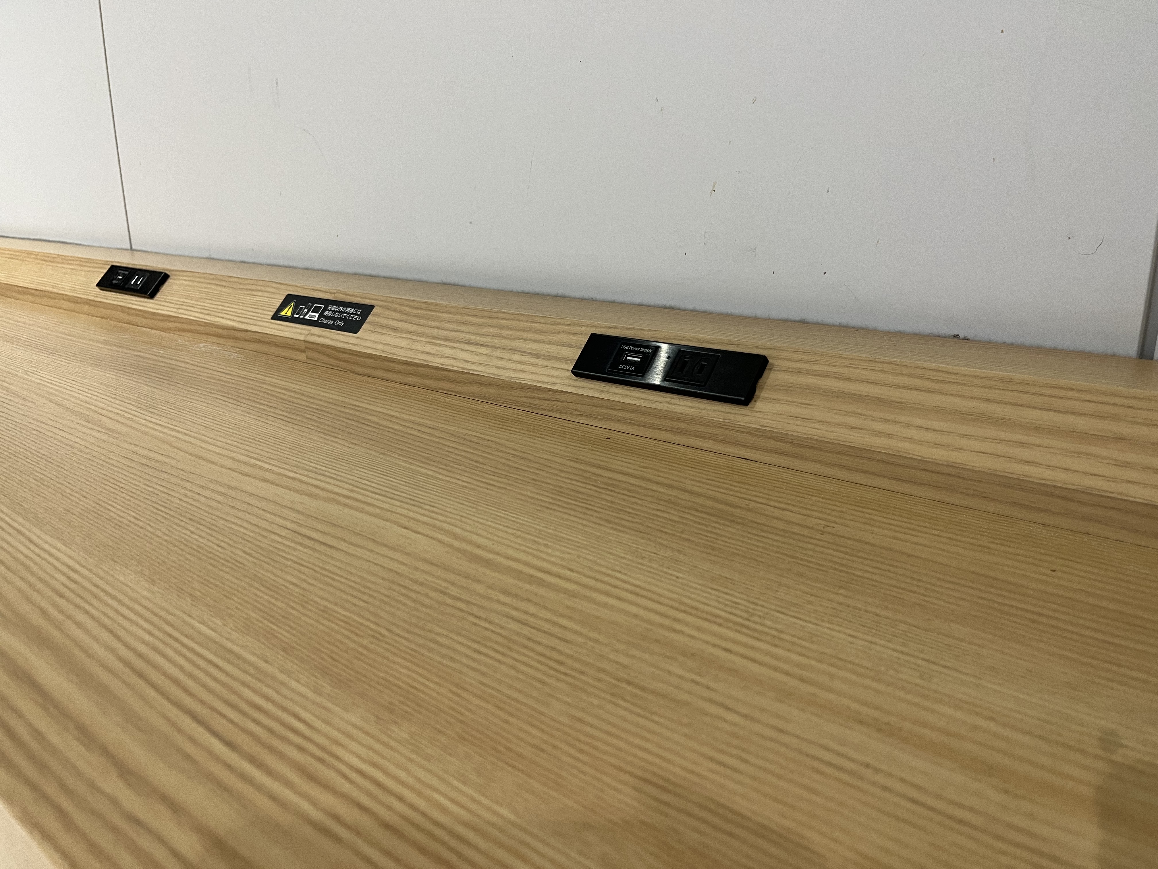 국내선 터미널 빌딩 1층에는 각 출구 사이에 아래 사진과 같은 충전 테이블이 있었지만 의자가 없었어요. 모두 캐리어에 앉아서 이용하더라고요.