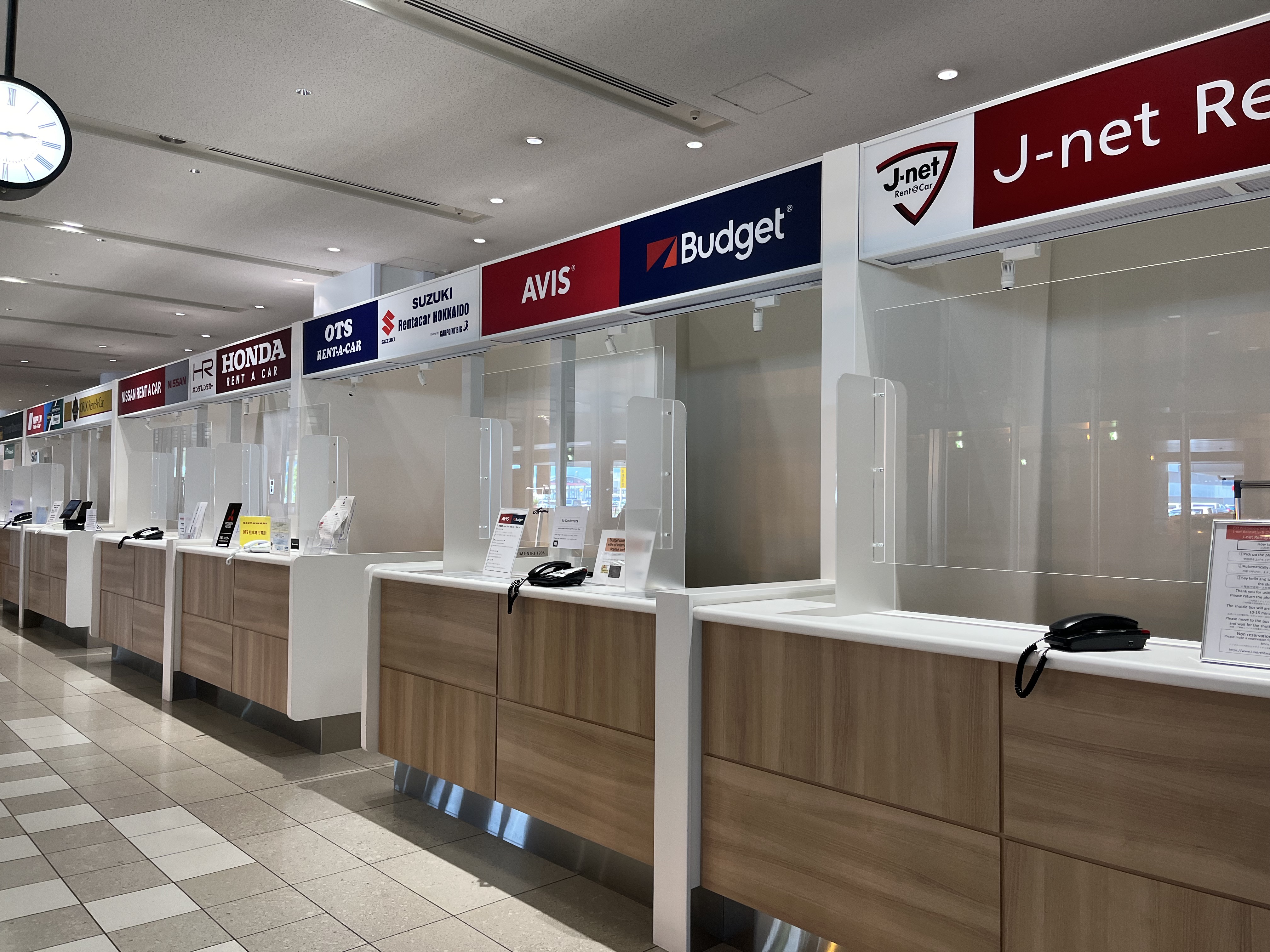1층으로 가니 렌터카 부스가 쭉 늘어서 있었지만 어느 업체도 직원은 상주하지 않고 그 대신 유선 전화가 놓여져 있었어요. 수화기를 들고 1을 누르면 사무실?에 전화가 가는데 그러면 셔틀버스를 보내줍니다.