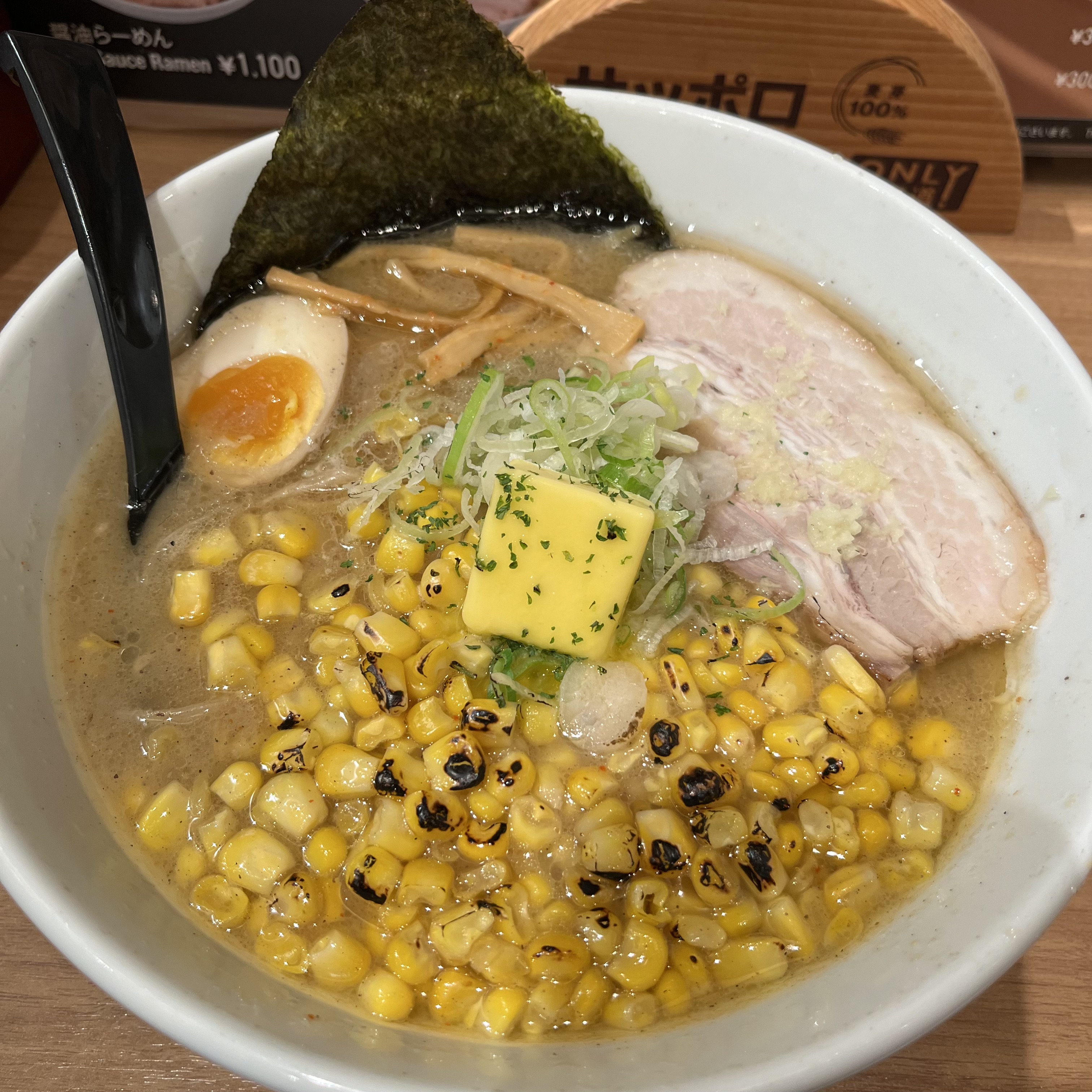 제가 뭘 먹었냐하면, 삿포로 미소 라멘이라 했을 때 딱 떠오르는 형상을 하고 있던 (아래 사진 중 가장 크게 표시되어있는)焼きとうきびラーメン(야끼 토-키비 라-멘; 군옥수수라멘)을 먹었습니다.