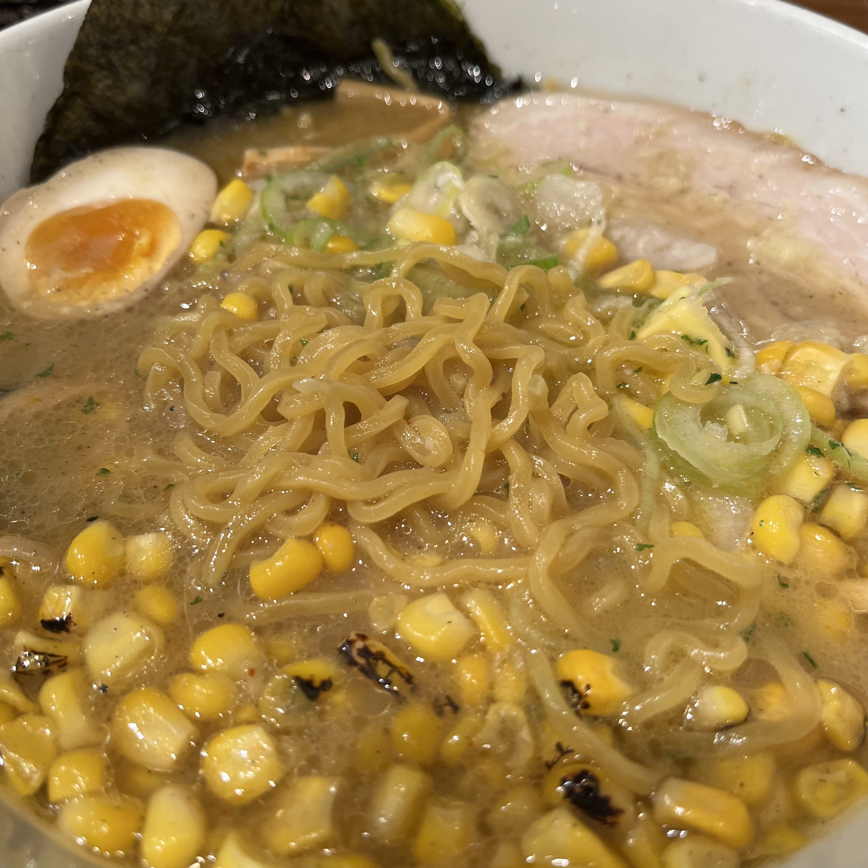 뭐가 그리도 별로였냐면, 1) 면이 꼬들꼬들한게 아니라 설익어서 딱딱했고 2) 군옥수수는 군옥수수를 먹을 때만 맛이 났고 3) 챠슈에서 돼지누린내가 났고 4) 라멘 국물에 감칠맛이라곤 느껴지지 않는 기름 둥둥 국물이었다는 점이에요.
