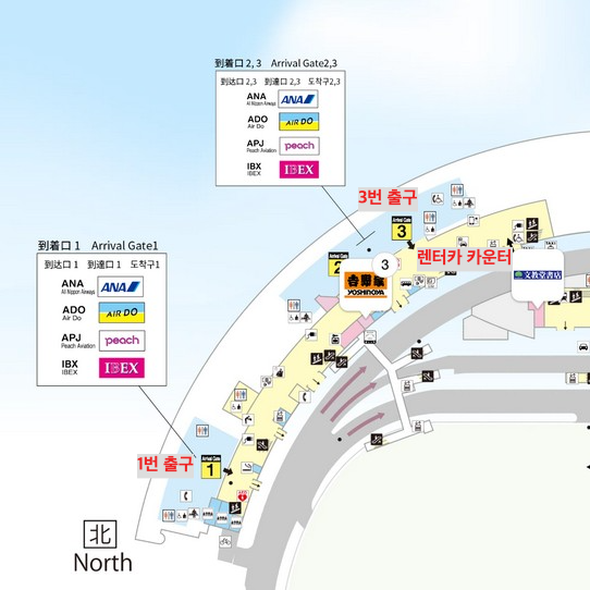 저는 이번에 피치항공을 이용했는데 국내선이니까 1층 노스윙 1 ~ 3출구 중 하나로 나왔어요(아마 1번 출구). 마침 노스윙 3번 출구 바로 앞에 렌터카 카운터가 전부 모여있더라고요. 제가 갔을 때는 직원이 없었는데 직원이 돌아올 때까지 기다려달라고 적혀있었습니다. 손님들 셔틀버스까지 안내한다고 자리를 비우셨대요.