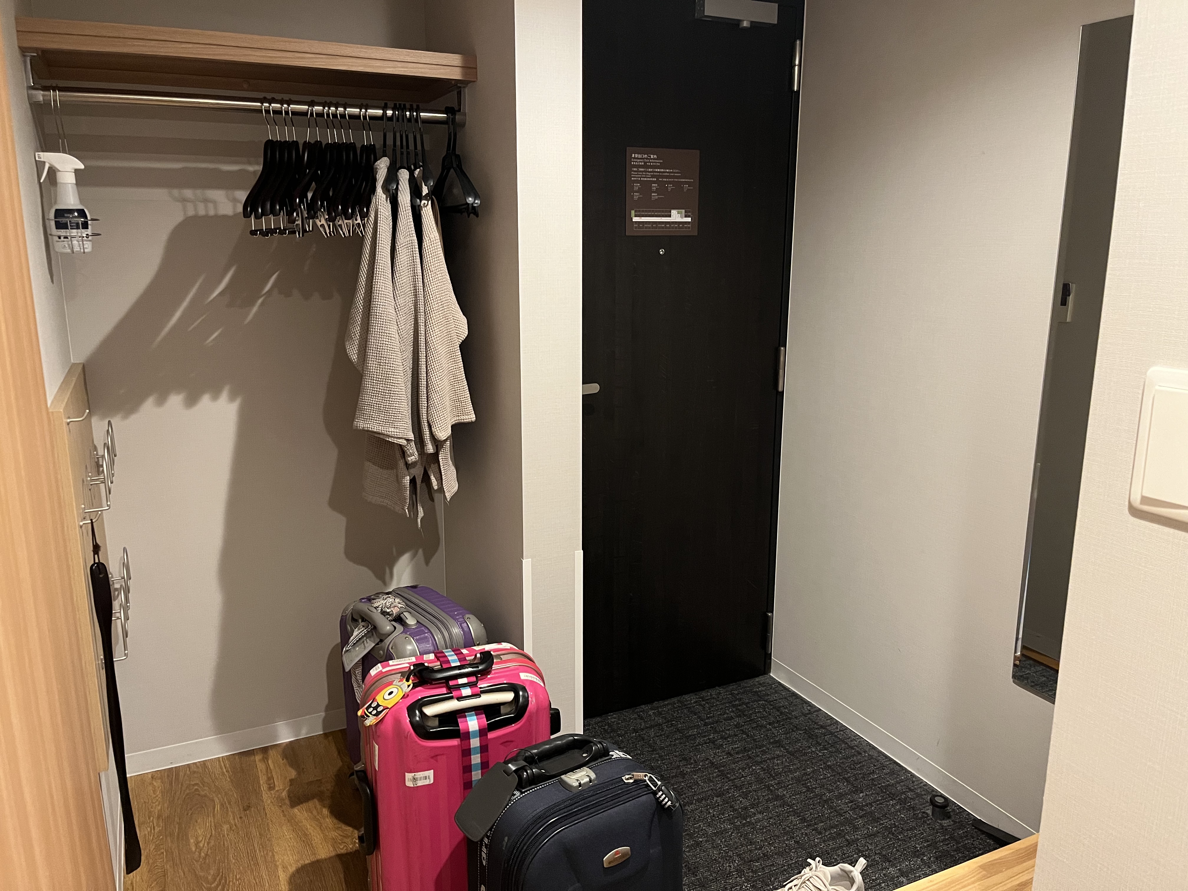 흔히 볼 수 있는 좁은 일본 호텔과 다르게 제대로 현관이 있고 화장실, 샤워룸, 세면실이 나뉘어져있었습니다(일본에서는 얘네가 다 따로 있어야 좋은 집입니다).
