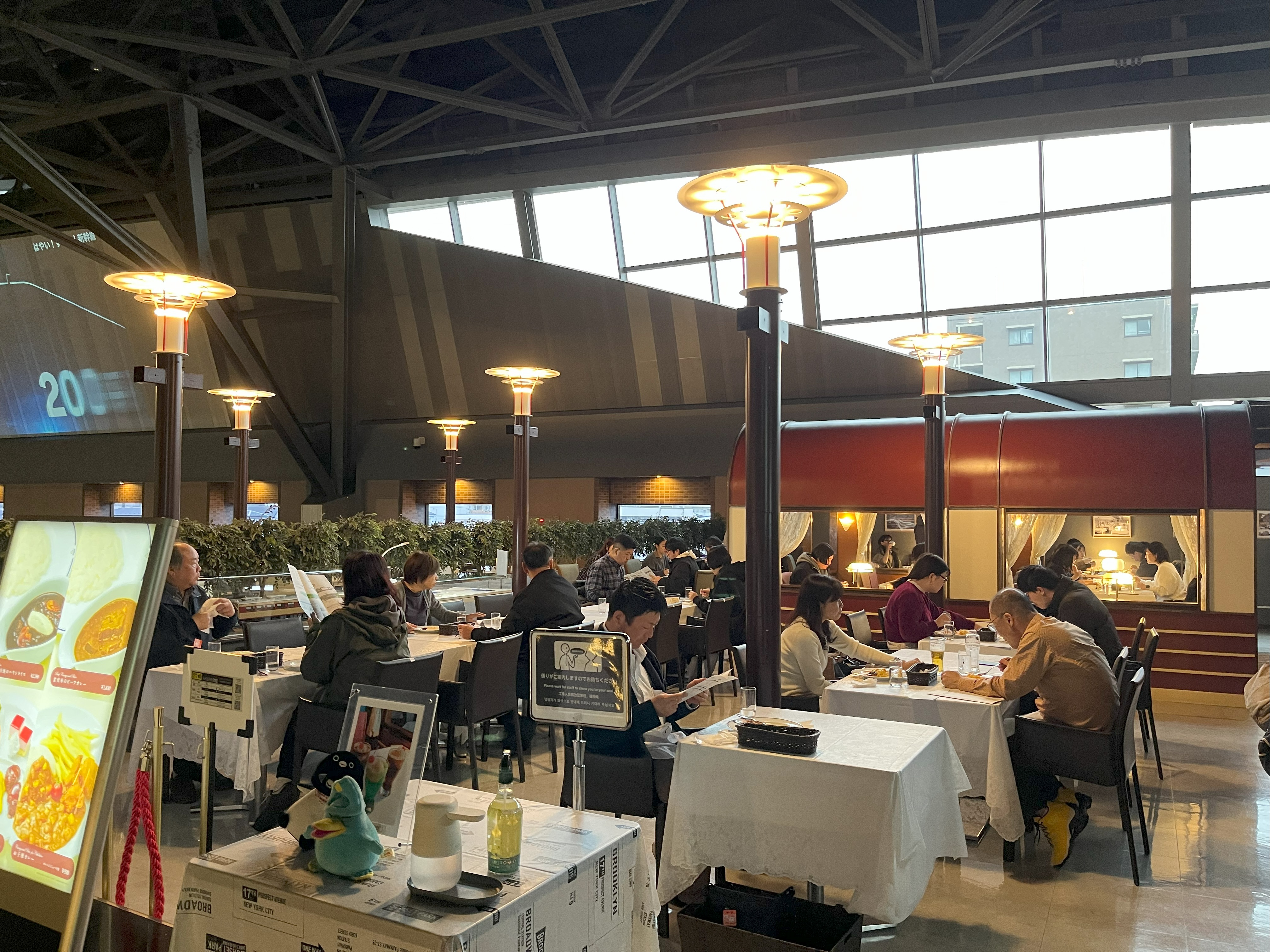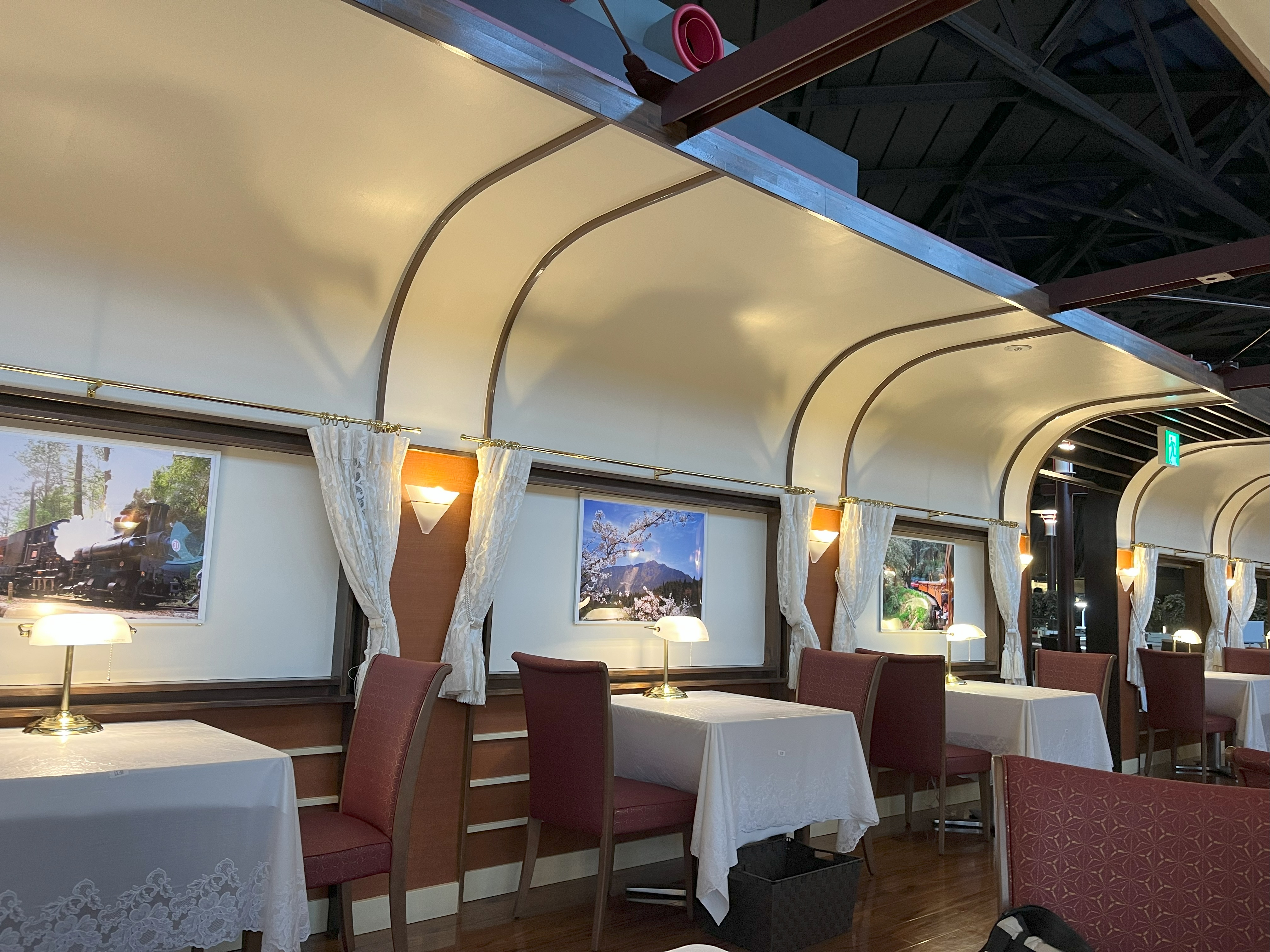 여기는 마치 열차 안에서 식사하는 듯한 경험을 할 수 있는 곳이에요! 안쪽에 있는 빨간 아치형 구조물 보이시나요? 그 곳이랍니다.