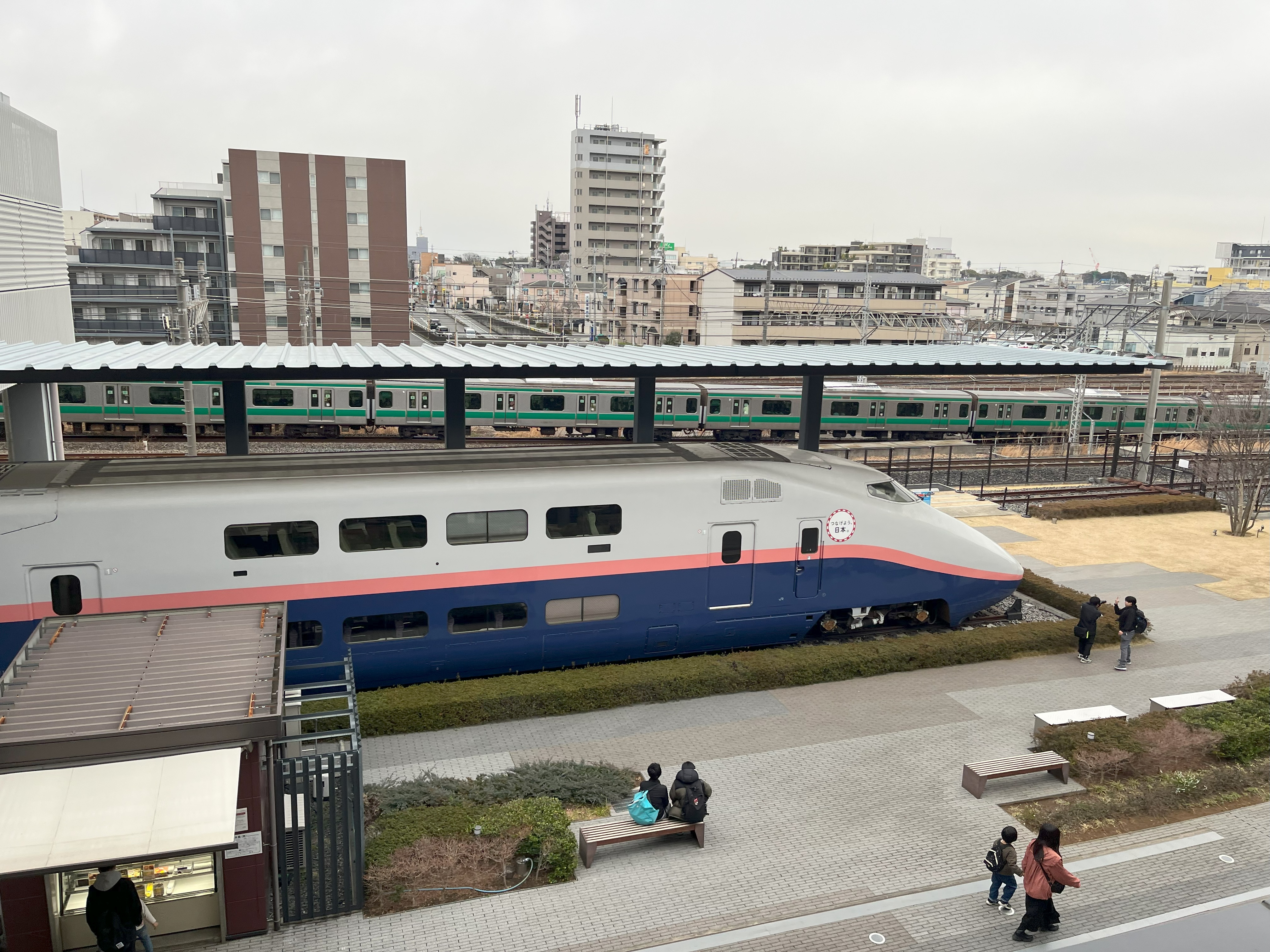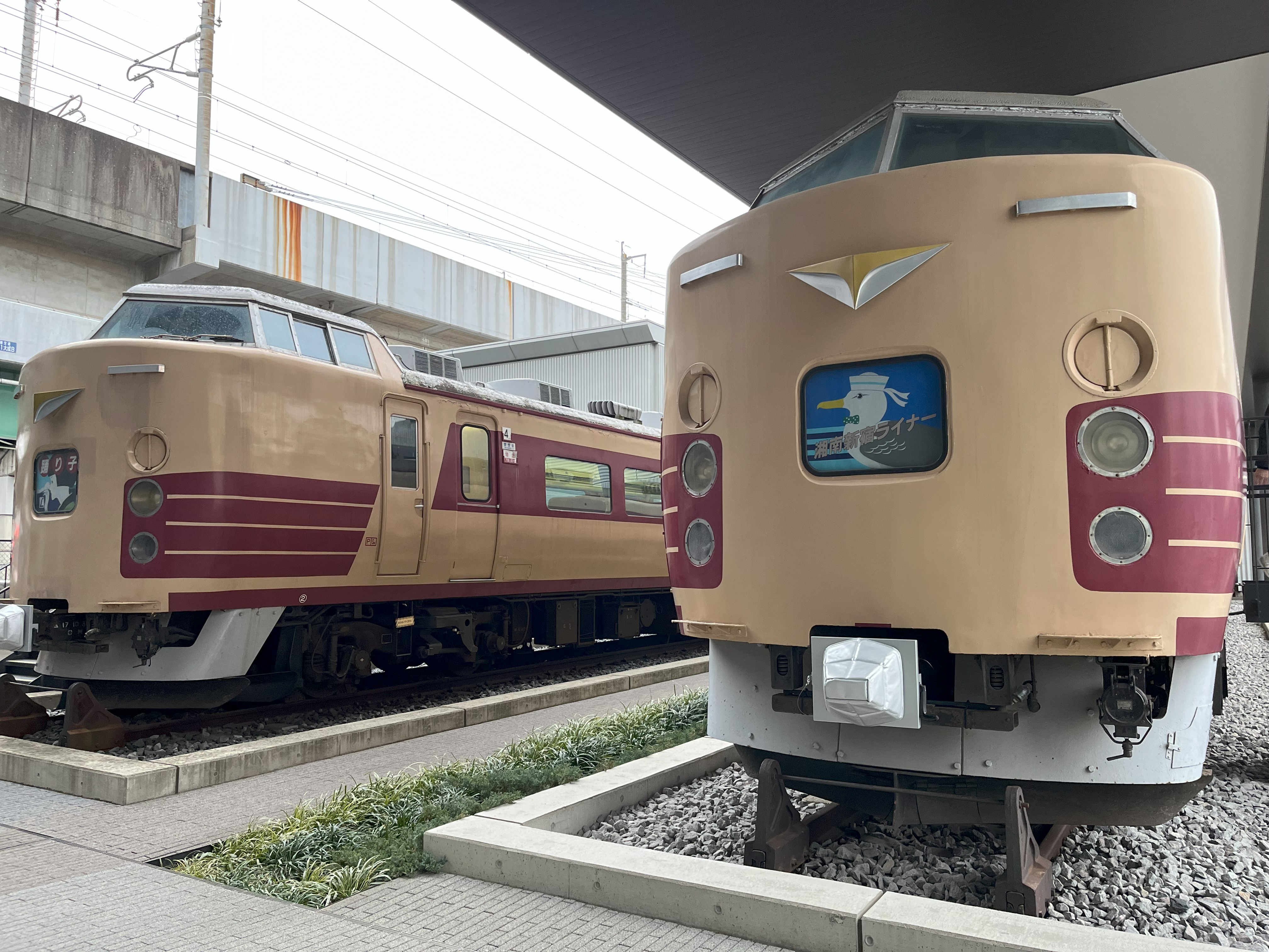 옆에 광장 같은 곳에는 옛날 신칸센이 전시되어 있습니다.