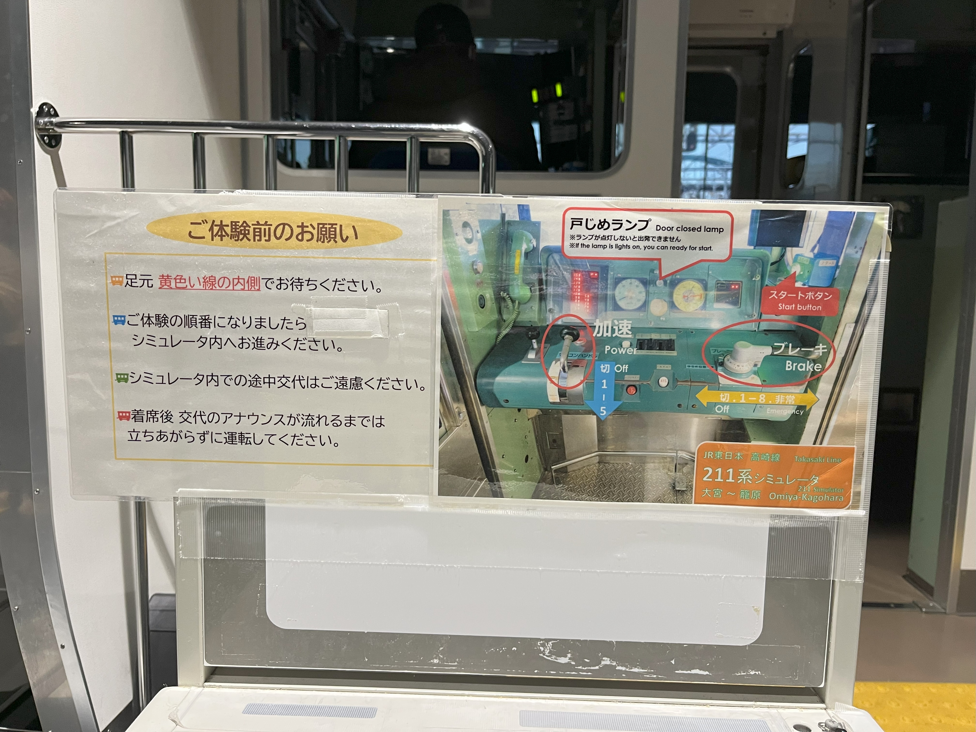 실제 운전하는 것 처럼 느껴지라고 앞에서 실제 영상 같은걸 틀어줘요. 타카사키선은 도심선은 아니라 완전 로컬 풍경이었습니다.