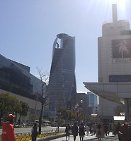 호텔에서 나와서 오른쪽으로 올라가면 횡단보도 너머에 오아시스21과 테레비탑이 보입니다.